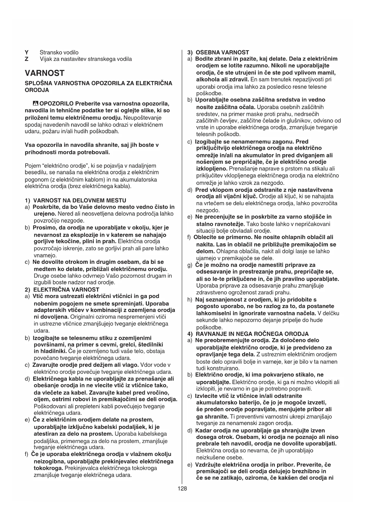 VARNOST SPLOŠNA VARNOSTNA OPOZORILA ZA ELEKTRIČNA ORODJA