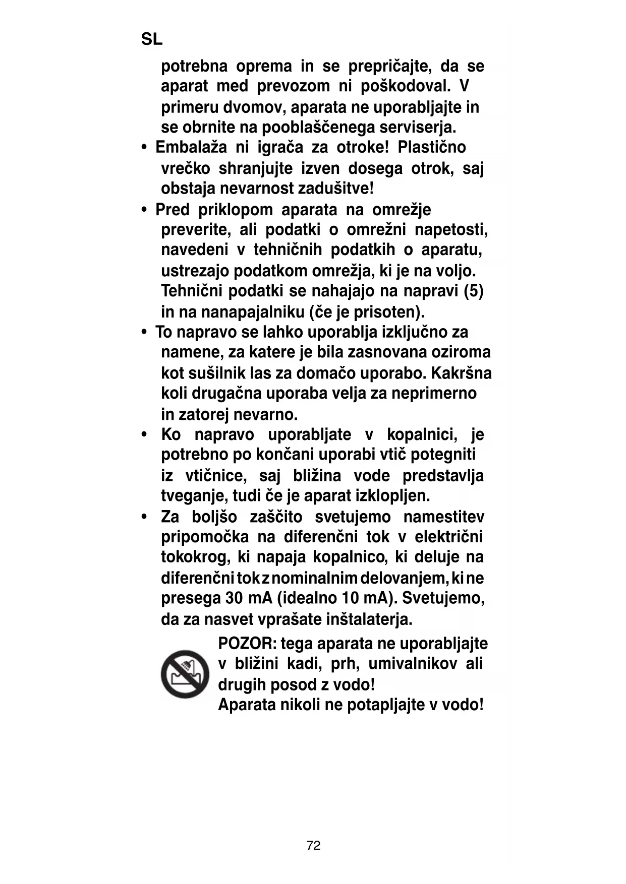 76Opomba: več kot je prahu v okolju, kjer se sušilnik las