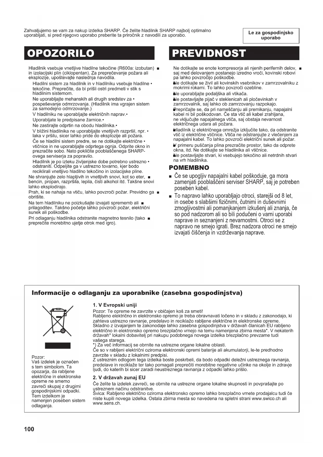 Pozor: Te opreme ne zavrzite v običajen koš za smeti!