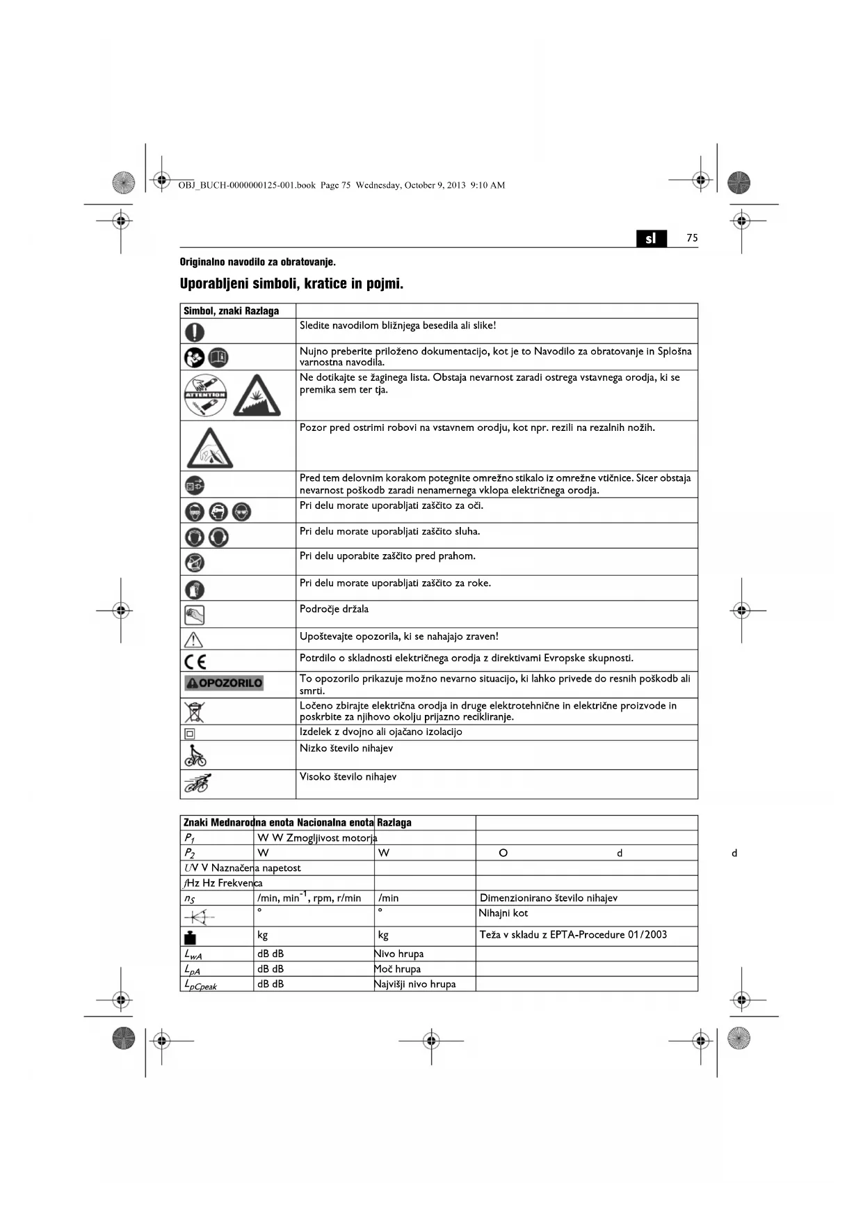opozoril (stevila spisa 341 30 054 06 1) in jih v celoti zumeli. Navedeno Dokumentacijo shranite za kasnejso uporabo in jo izrocitapnepi posredovanju ali odsvojtvi elektricnega orodja.