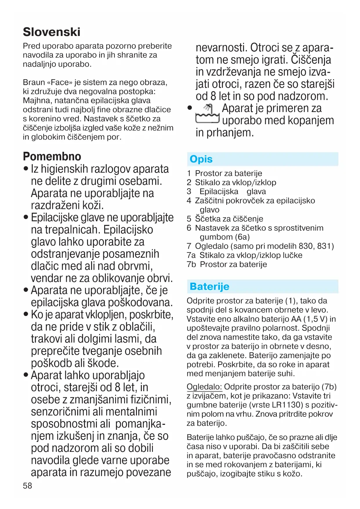 SE831 Face - Epilator BRAUN - Notice d'utilisation et mode d'emploi gratuit