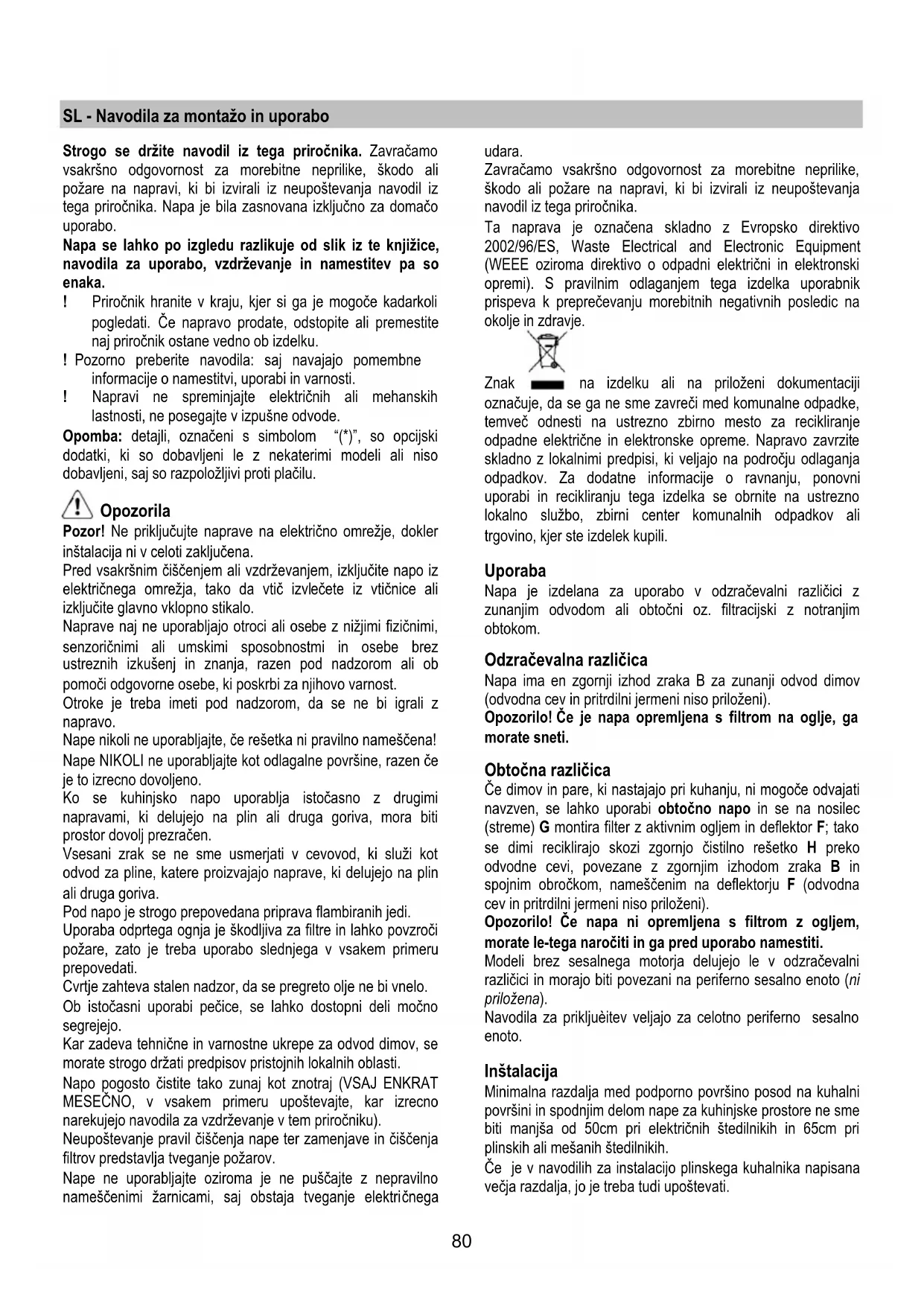 Strogo se držite navodil iz tega priročnika. Zavračamo vsakršno odgovornost za morebitne neprilike, škodo ali požare na napravi, ki bi izvirali iz neupoštevanja navodil iz tega priročnika. Napa je bila zasnovana izključno za domačo uporabo.