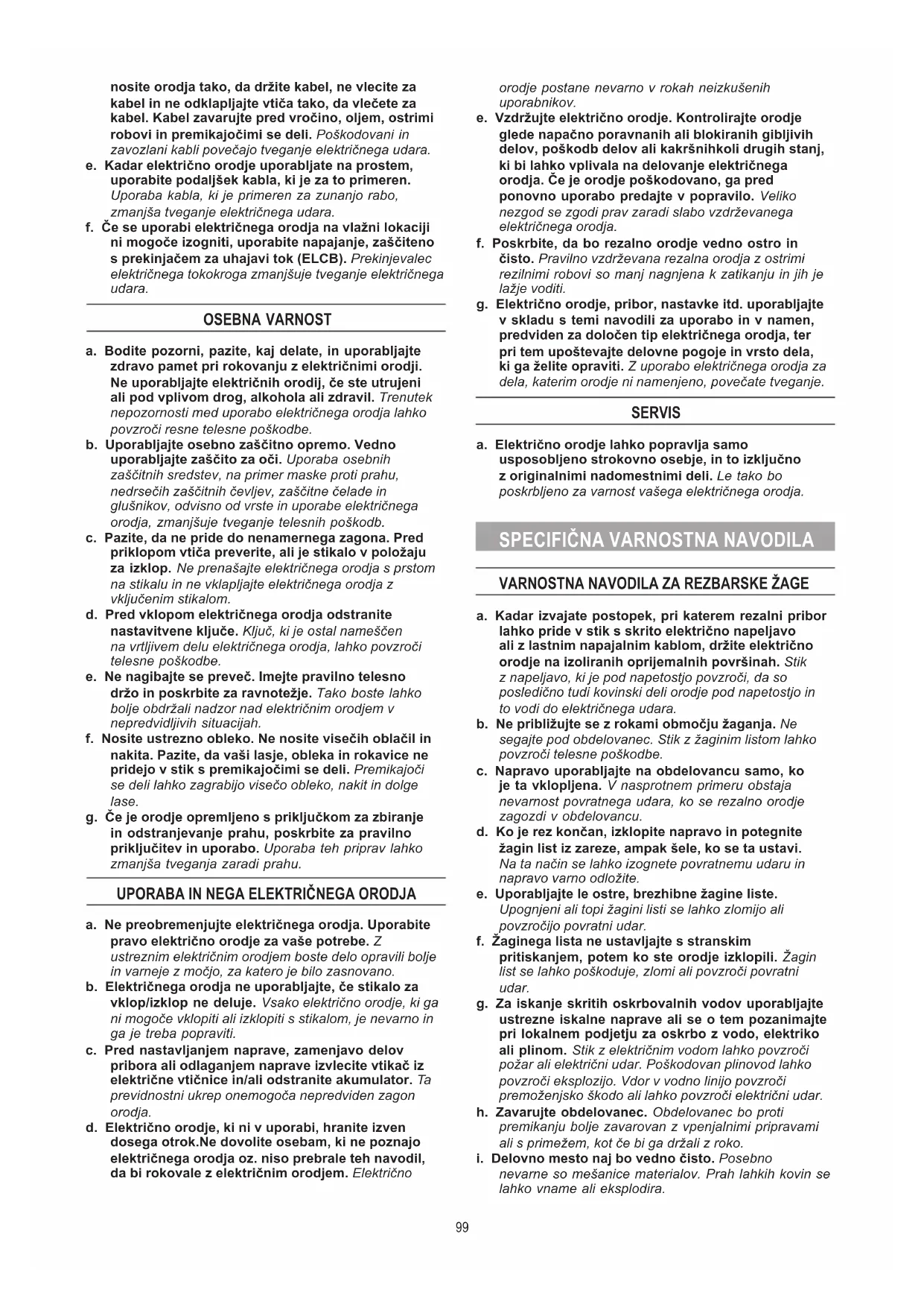 UPORABA IN NEGA ELEKTRIČNEGA ORODJA