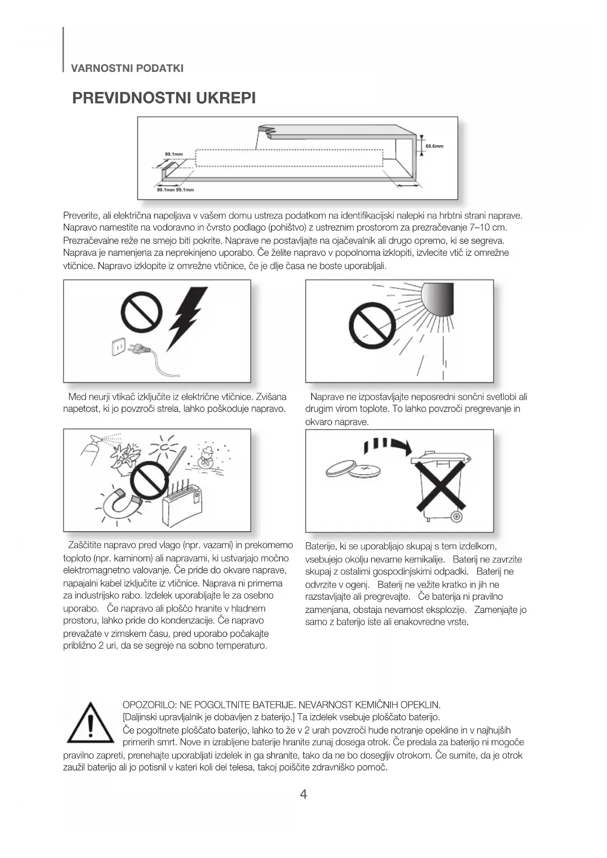 primerih smrt. Nove in izrabljene baterije hranite zunaj dosega otrok. Če predala za baterijo ni mogoče