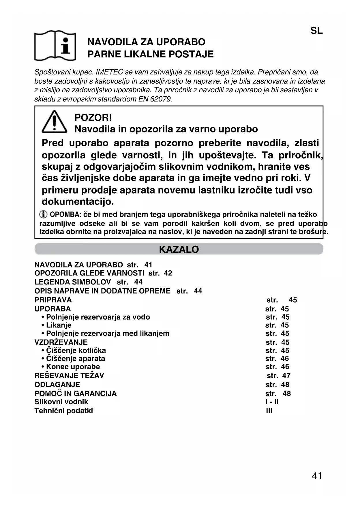 Slikovni vodnik I - II Tehnični podatki IIISL