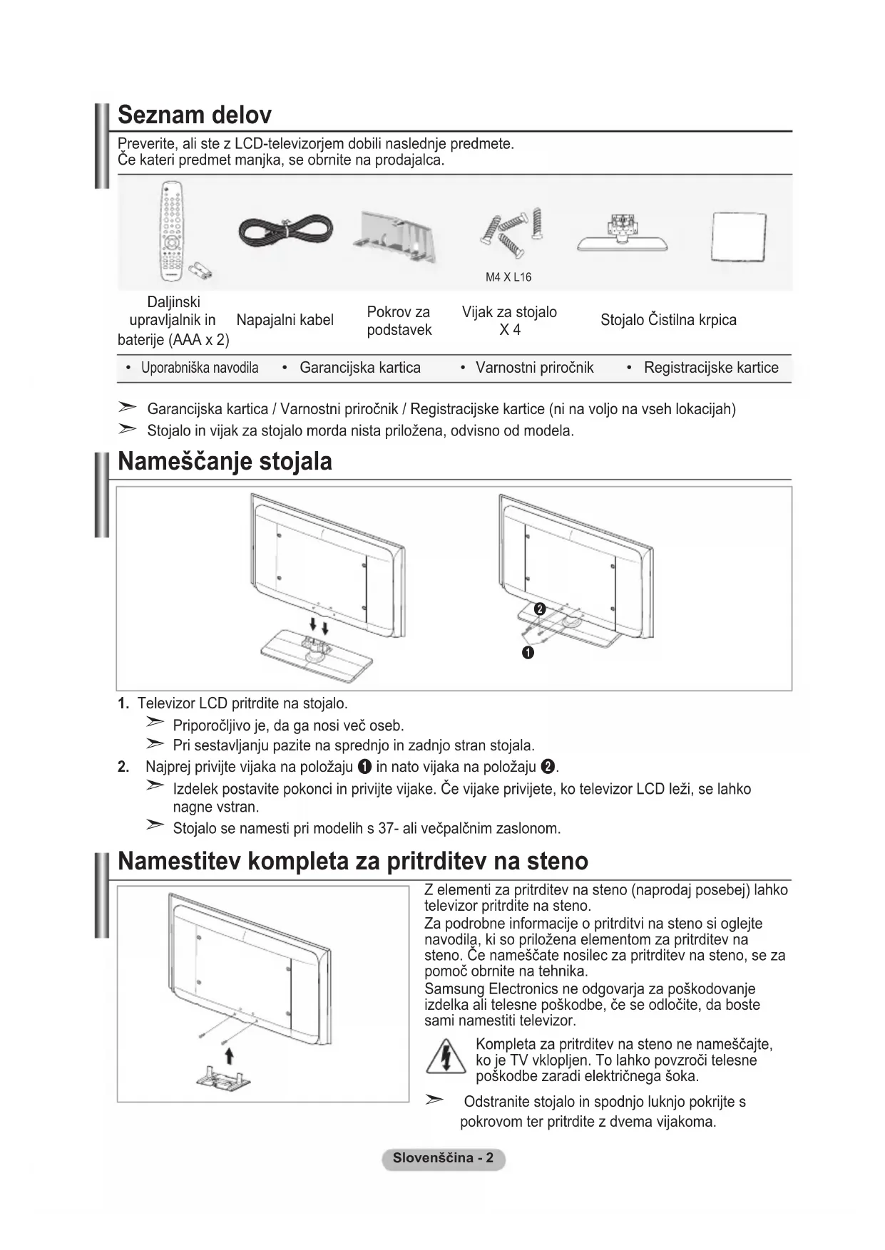 PRIKLJUČITEV IN PRIPRAVA TV-JA Seznam delov 2