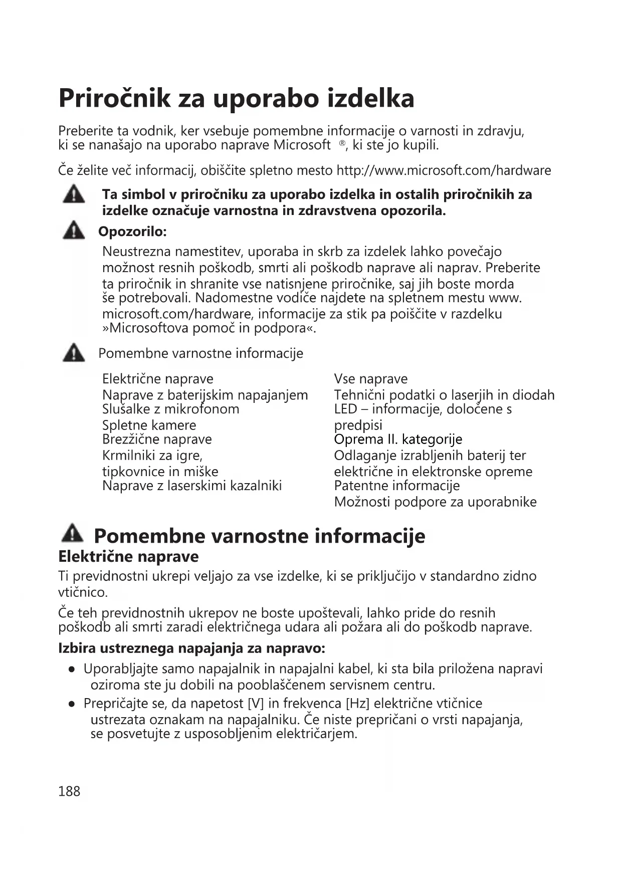 NAVODILA ZA UPORABO 2CF00012 MICROSOFT