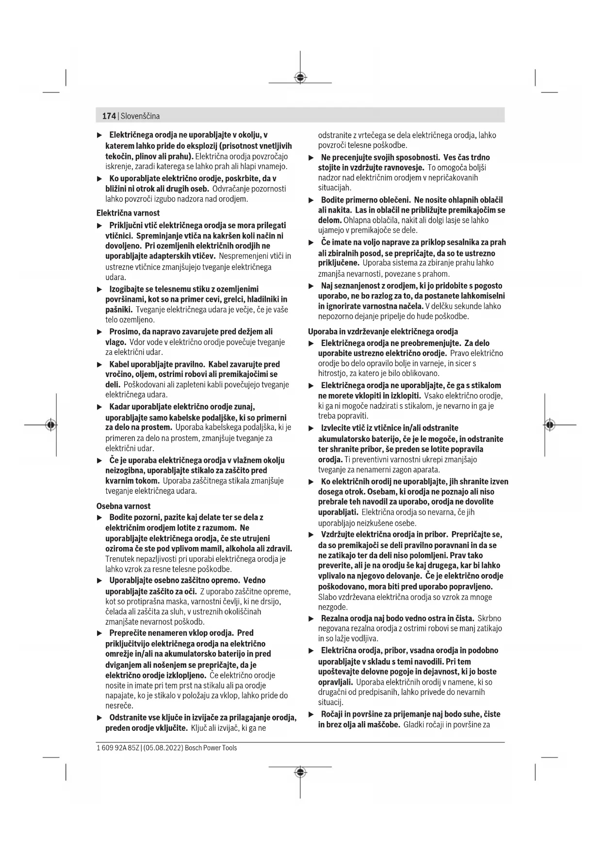 nezgod. Bosch Power Tools 1 609 92A 85Z | (05.08.2022)174 | Slovenščina