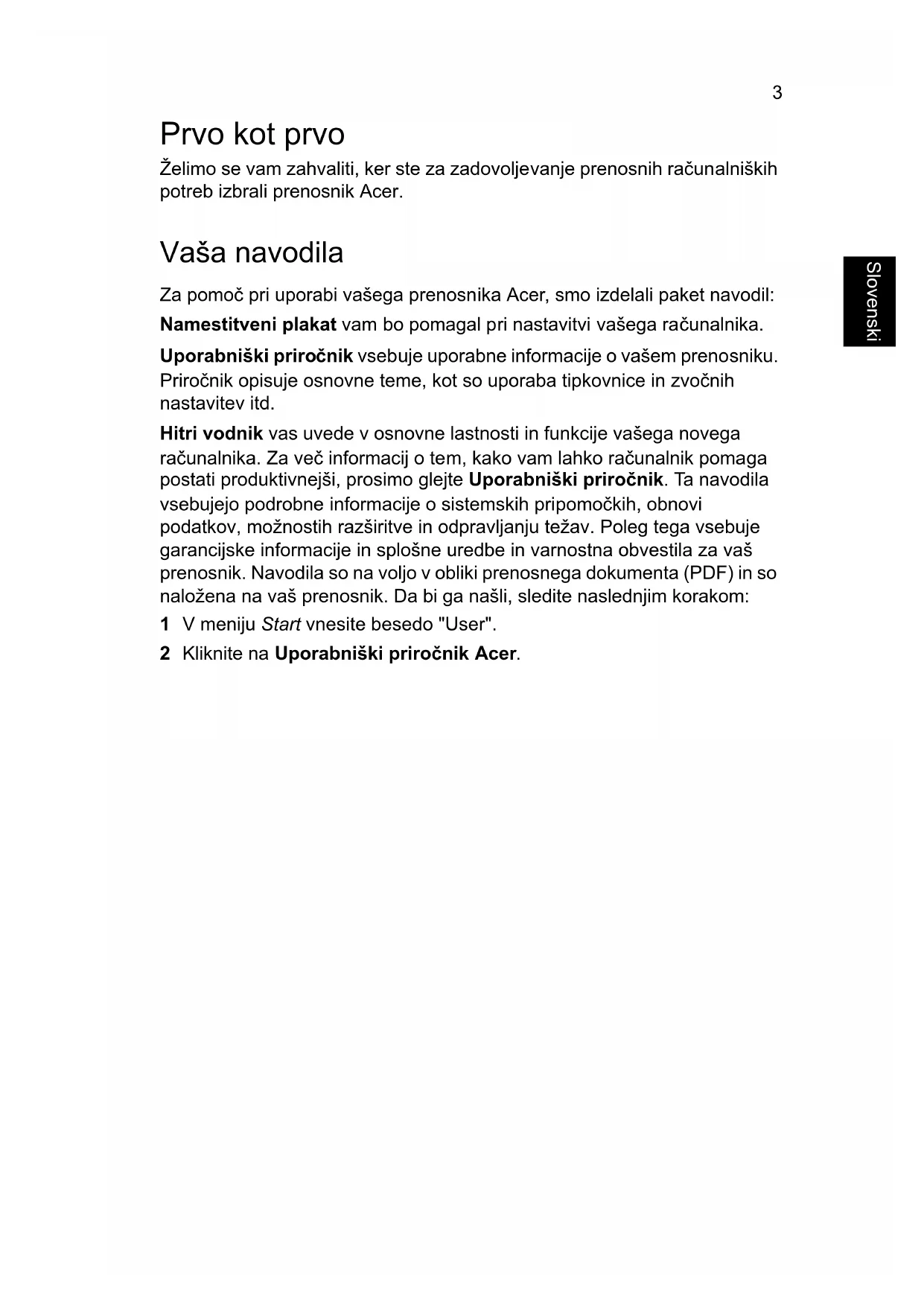 Za pomoč pri uporabi vašega prenosnika Acer, smo izdelali paket navodil: