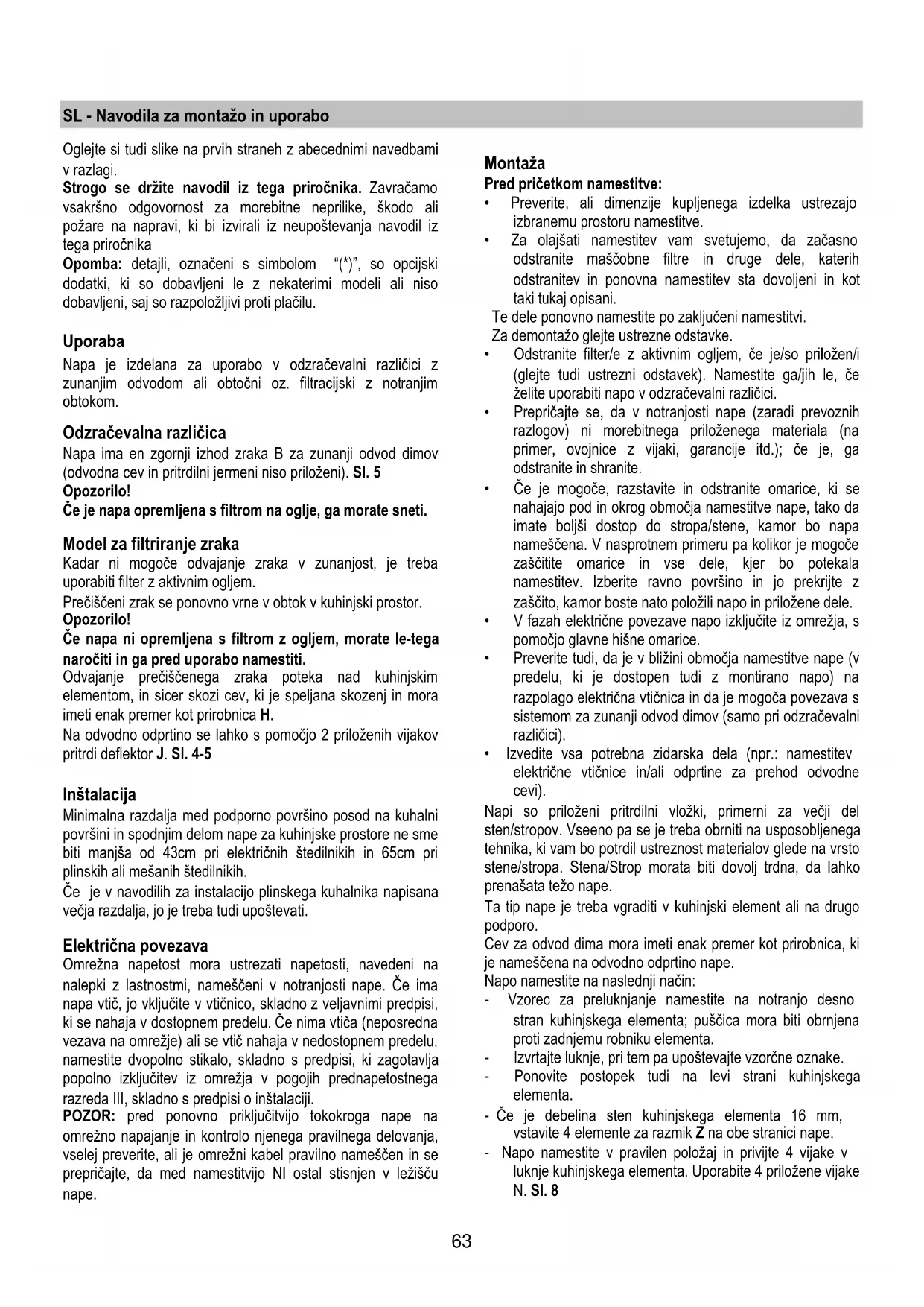 čiščenja protimaščobnega filtra. Filter je treba zamenjati vsaj