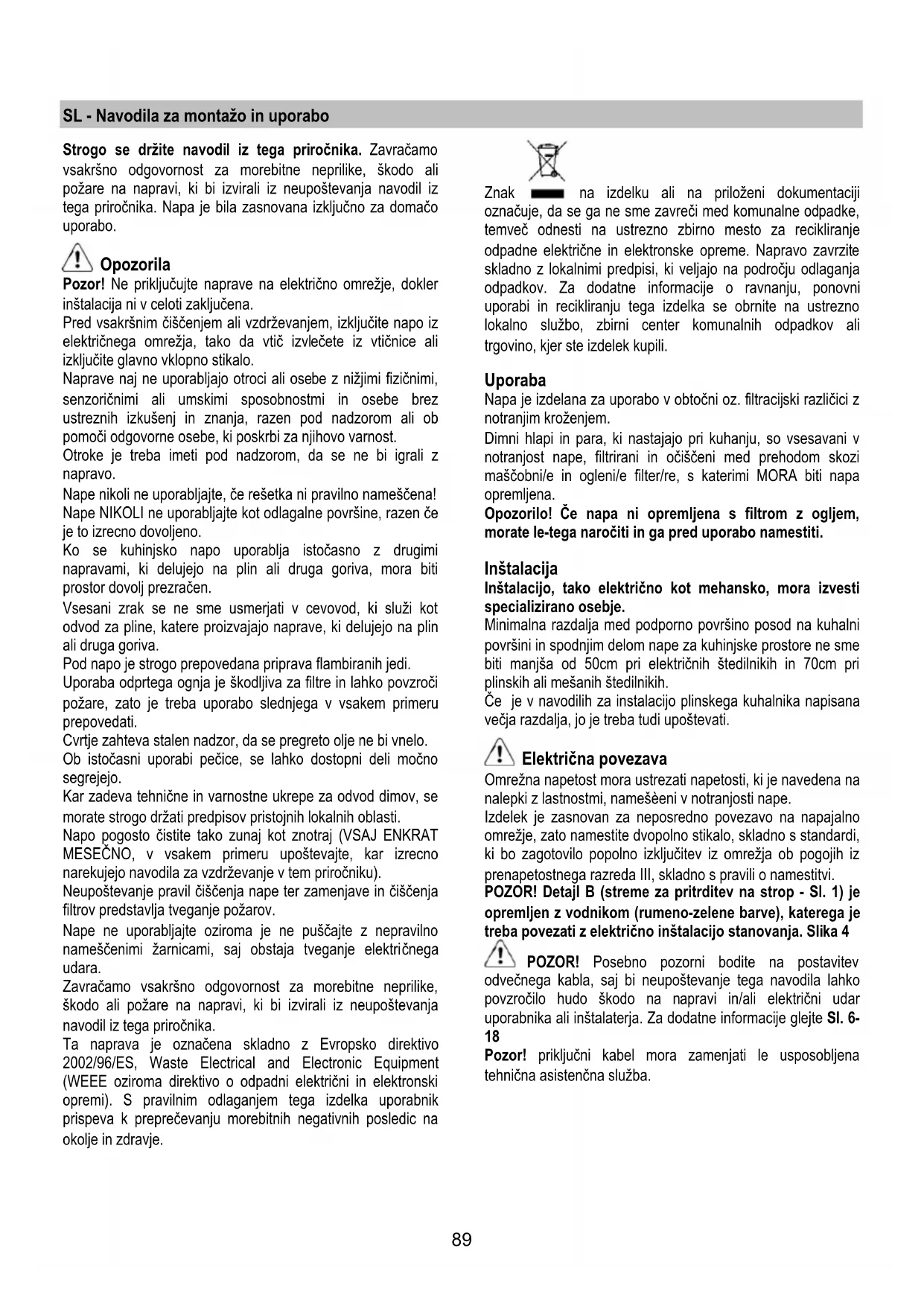 uporabnika ali inštalaterja. Za dodatne informacije glejte Sl. 6-