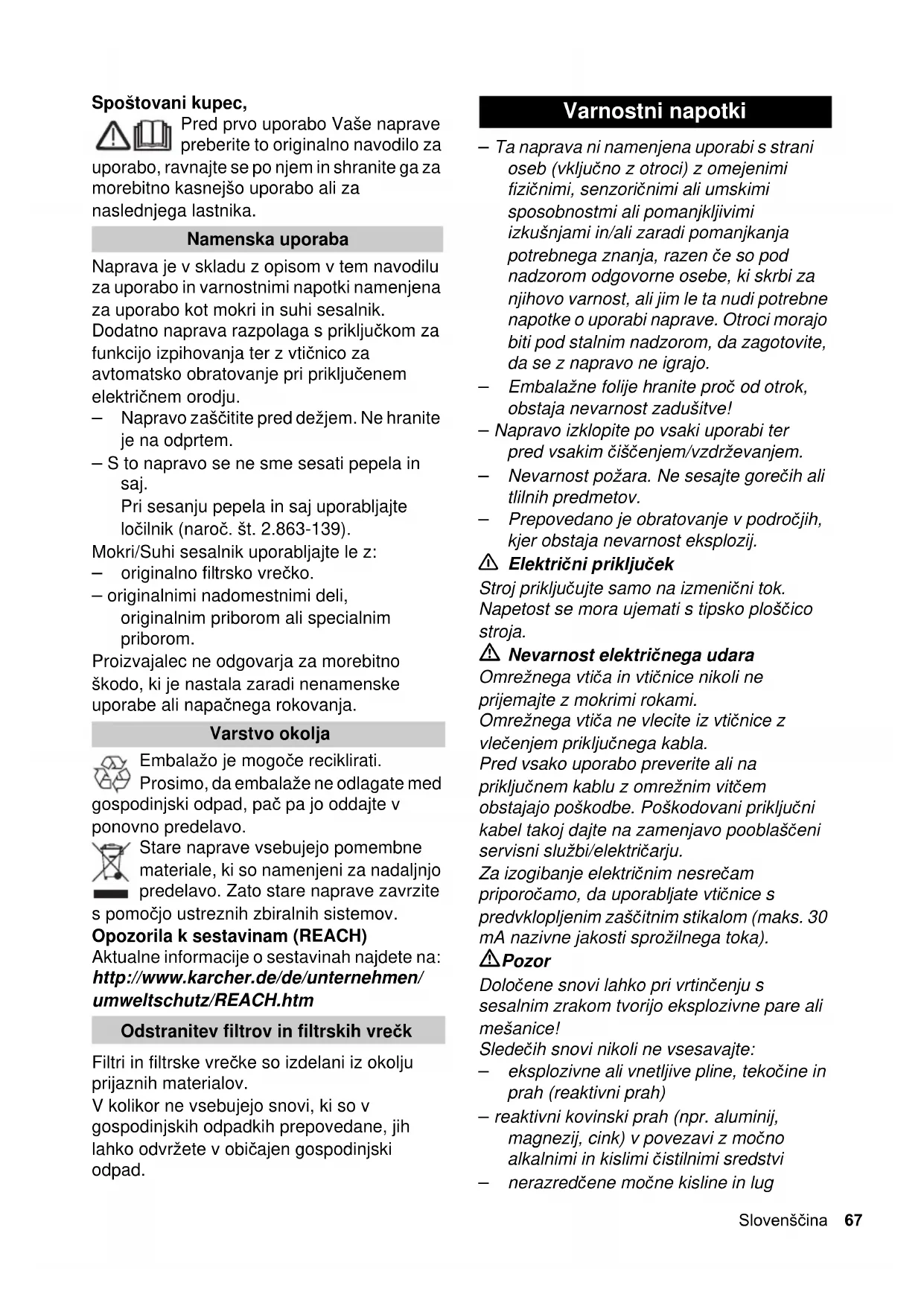 za uporabo kot mokri in suhi sesalnik.
