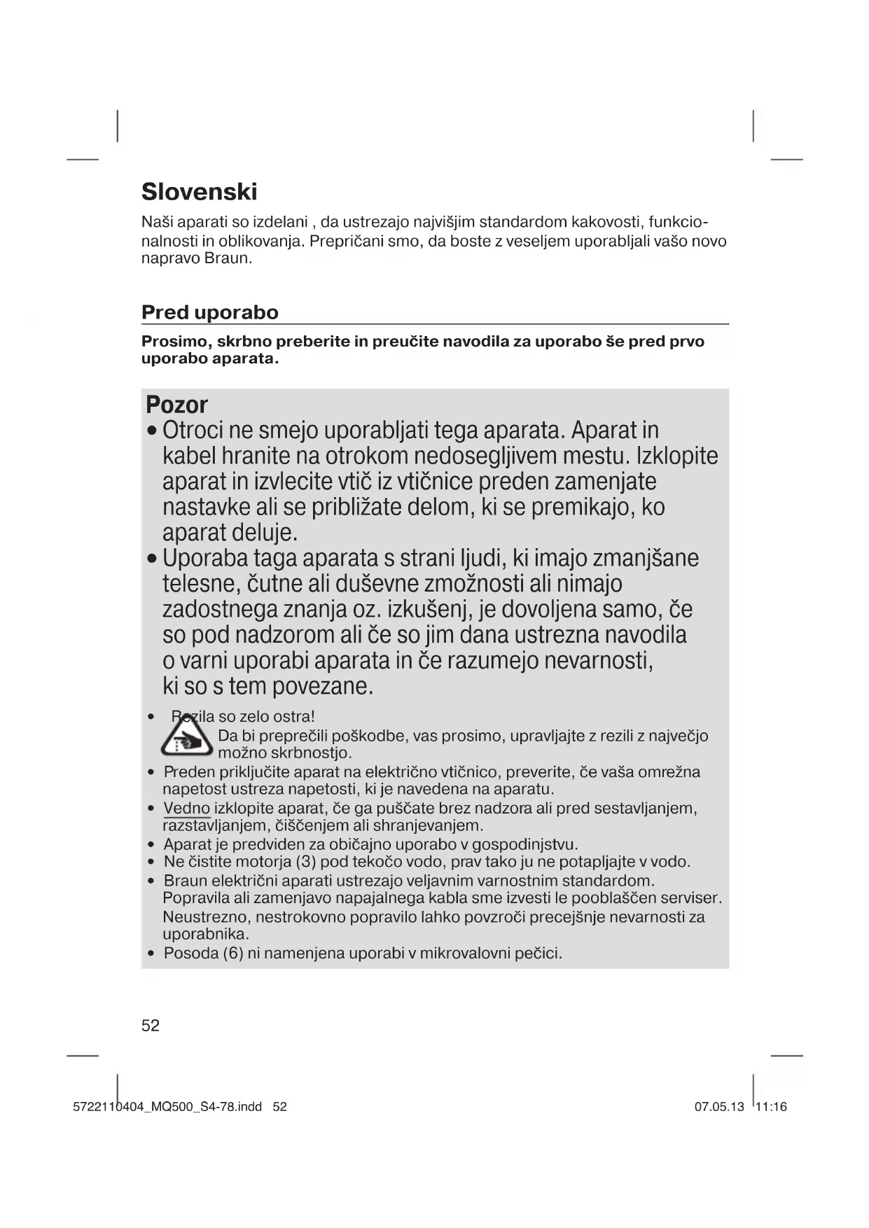 NAVODILA ZA UPORABO Minipimer 5 BRAUN
