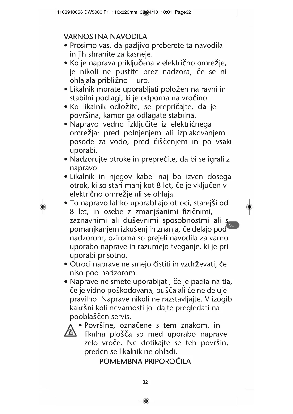 • Ta izdelek je namenjen samo domači uporabi. Proizvajalec ne prevzema