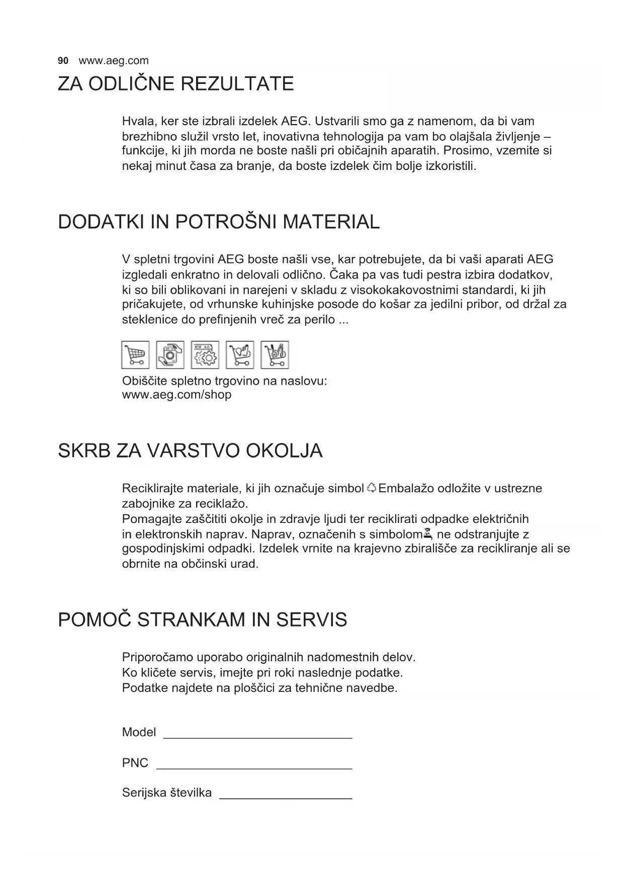 DODATKI IN POTROŠNI MATERIAL V spletni trgovini AEG boste našli vse, kar potrebujete, da bi vaši aparati AEG