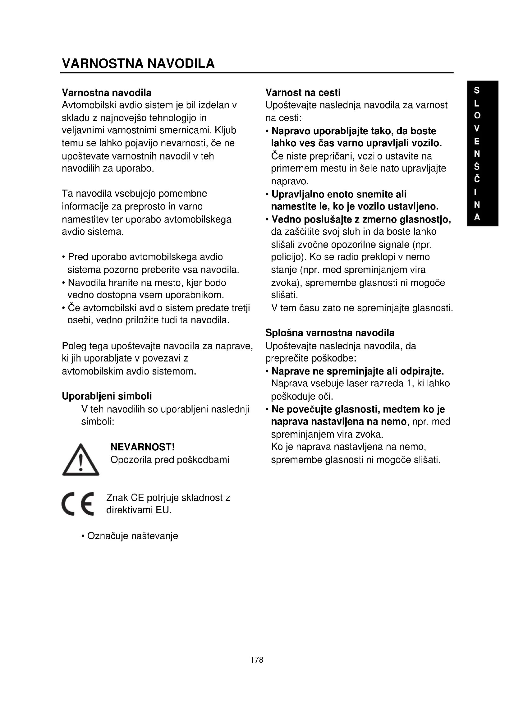 - Označuje naštevanje Varnost na cesti Upoštevajte naslednja navodila za varnost na cesti: