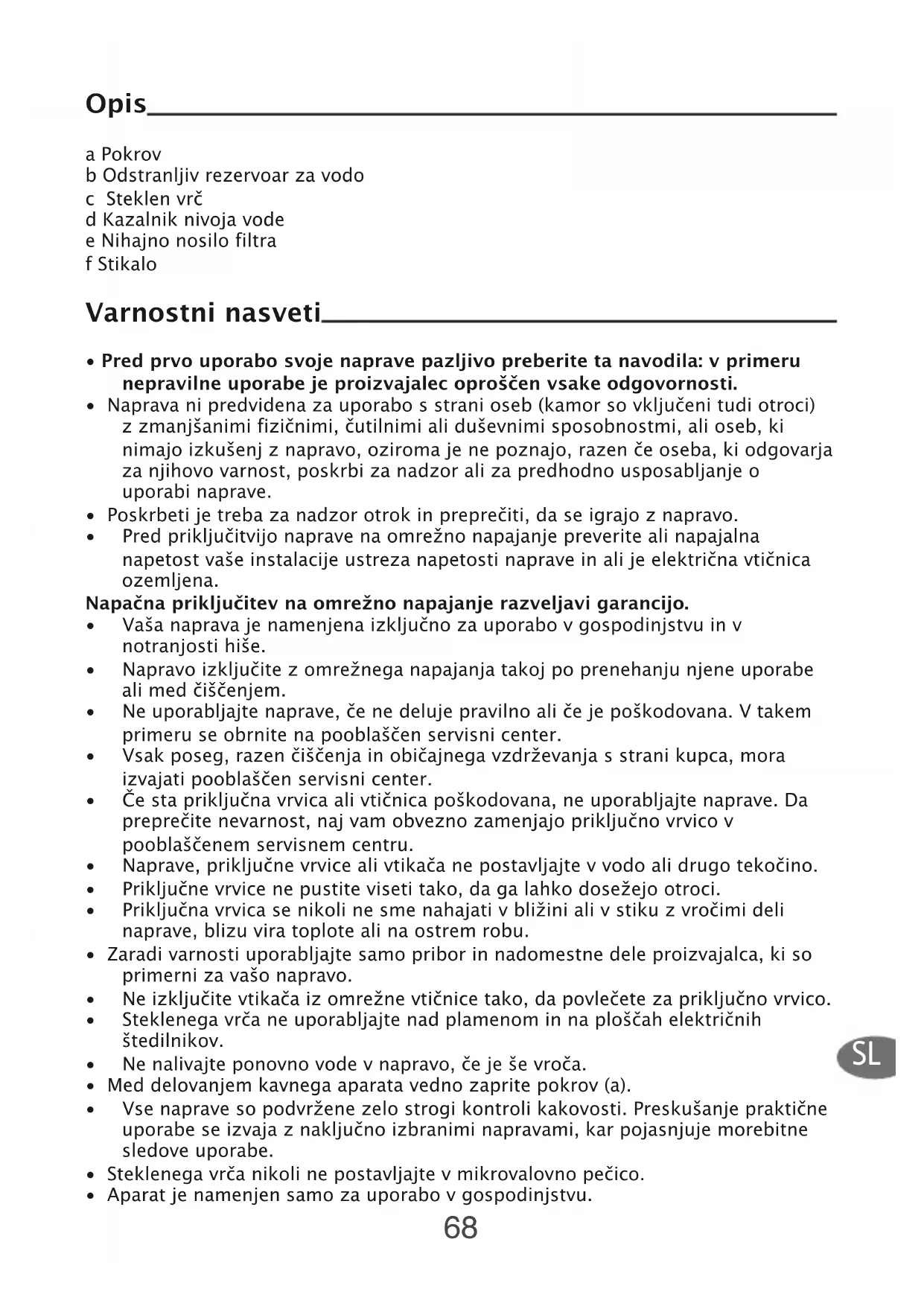 - Vaša naprava je namenjena izključno za uporabo v gospodinjstvu in v notranjosti hiše.
