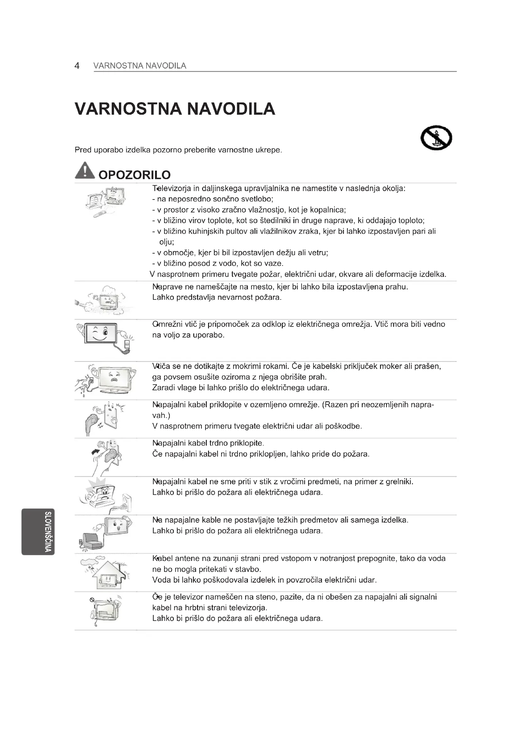 Četelevizornamestitenastropalipoševno steno,lahkopadeinvashujepoškoduje. Uporabite odobren stenski nosilec znamke LG in se obrnite na lokalnega trgovca ali usposobljenoosebje.