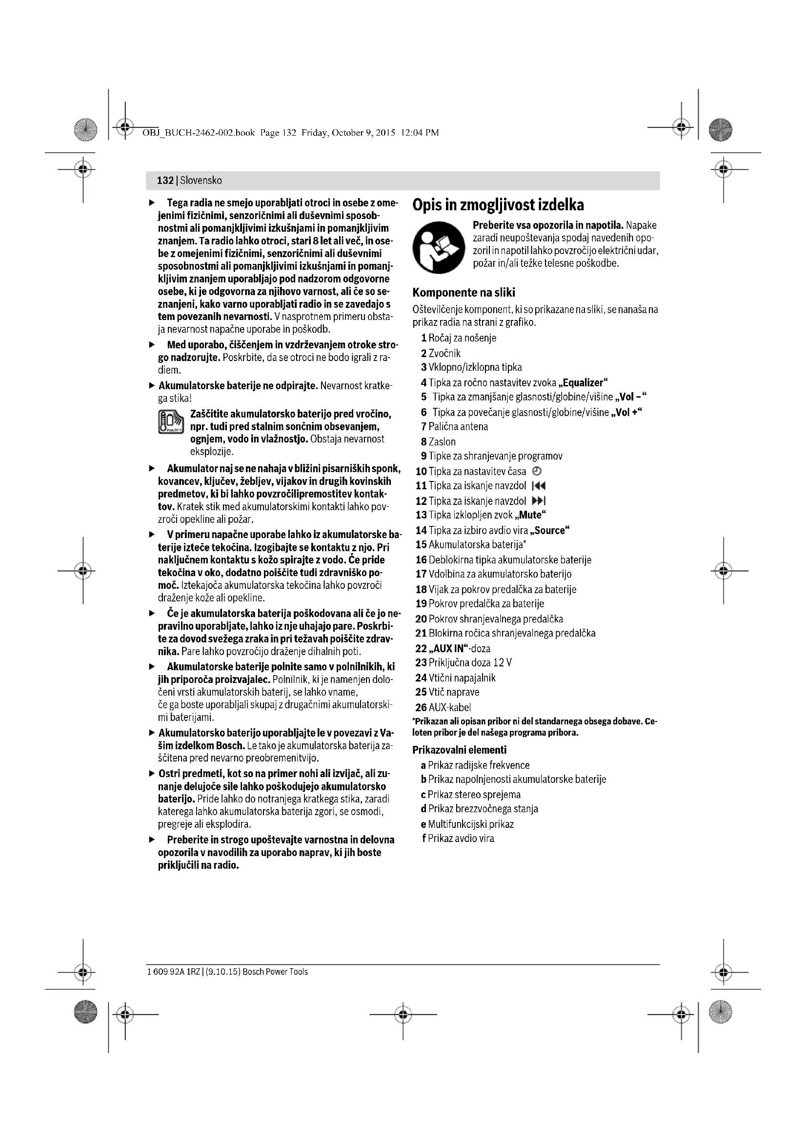0...+45 –10...+40 –20...+50 Priporočene akumulatorske baterije PBA 10,8 V ... Priporočeni polnilniki AL 11.. CV Avdio obratovanje/radio Omrežna napetost – pri obratovanju z vtičnim napajalnikom – pri obratovanju z akumulatorjem