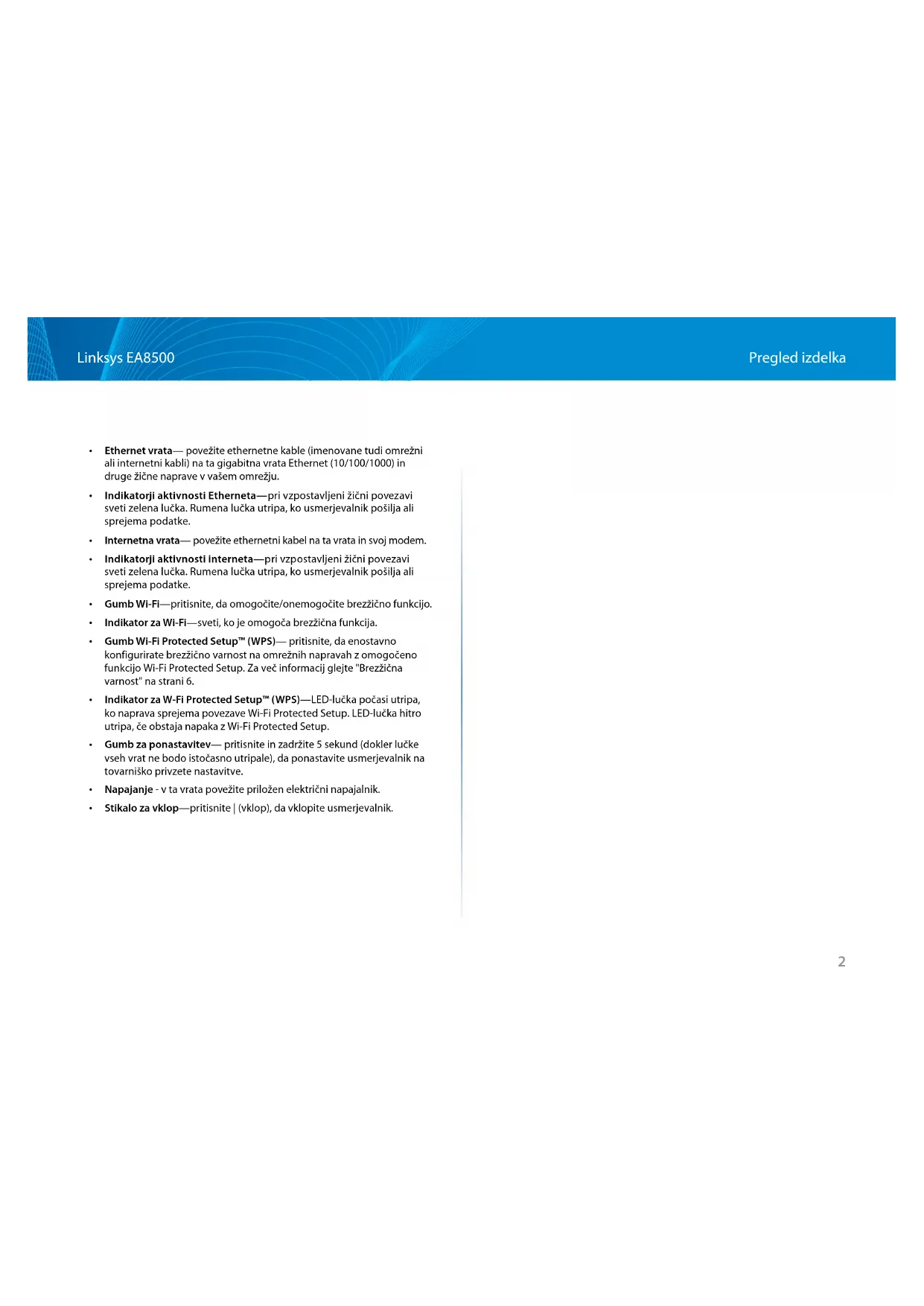 - Specifikacije Linksys EA8500 Linksys EA8500 Pregled izdelka EA8500 Pogled od spredaj p. 101