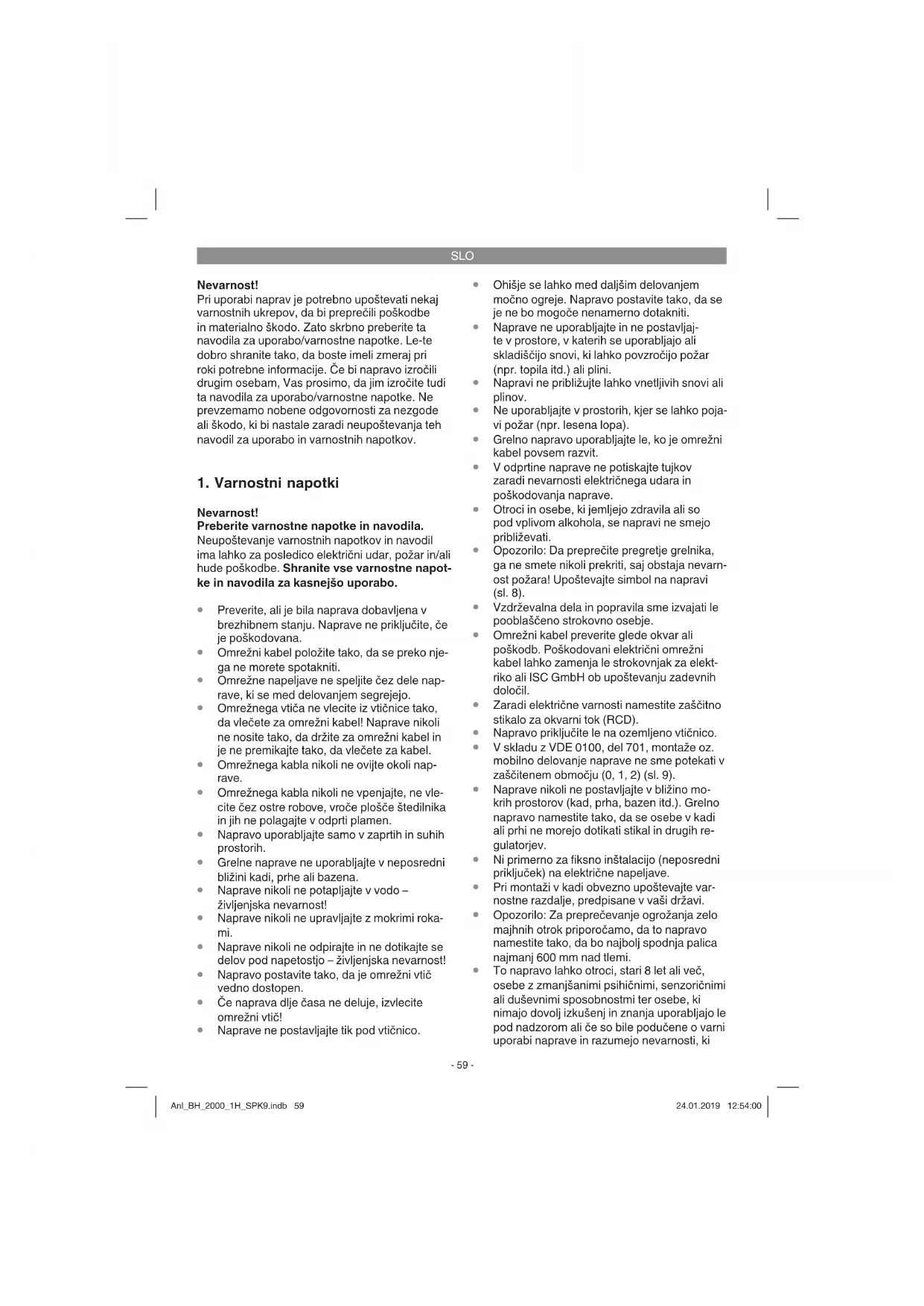 To napravo lahko otroci, stari 8 let ali več, osebe z zmanjšanimi psihičnimi, senzoričnimi ali duševnimi sposobnostmi ter osebe, ki nimajo dovolj izkušenj in znanja uporabljajo le pod nadzorom ali če so bile podučene o varni uporabi naprave in razumejo nevarnosti, ki Anl_BH_2000_1H_SPK9.indb 59Anl_BH_2000_1H_SPK9.indb 59 24.01.2019 12:54:0024.01.2019 12:54:00SLO