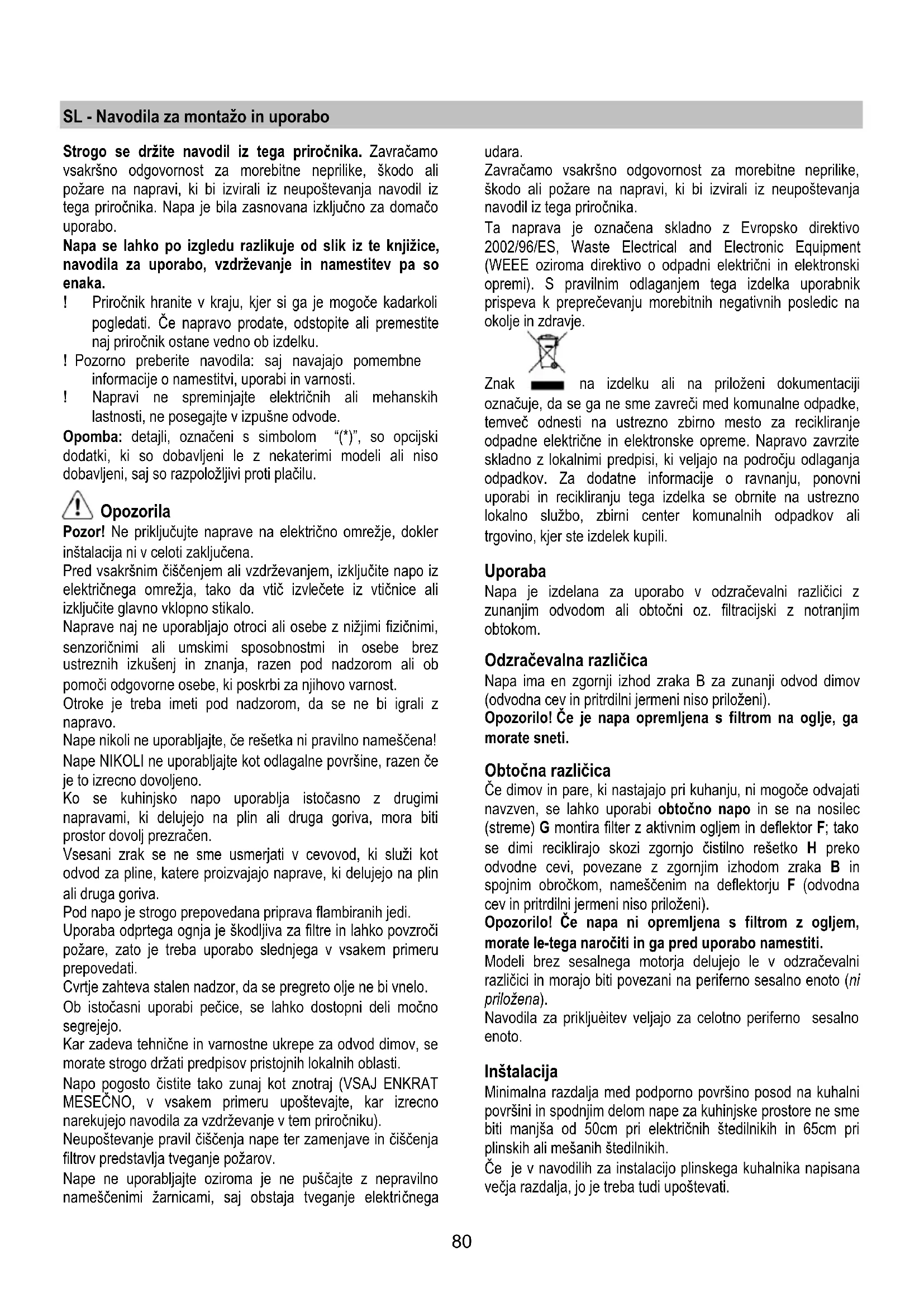 ! Napravi ne spreminajte elektrichnih ali mehanskihlastnosti, ne posegaje v izpušne odvode.