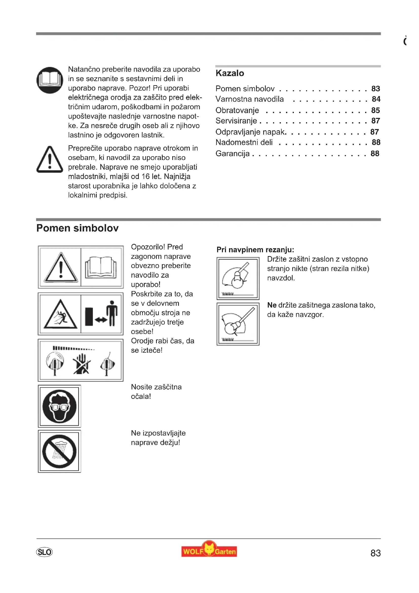 - Oxestitamo k nakupu izdelka WOLF Kazalo Pomen simbolov p. 83