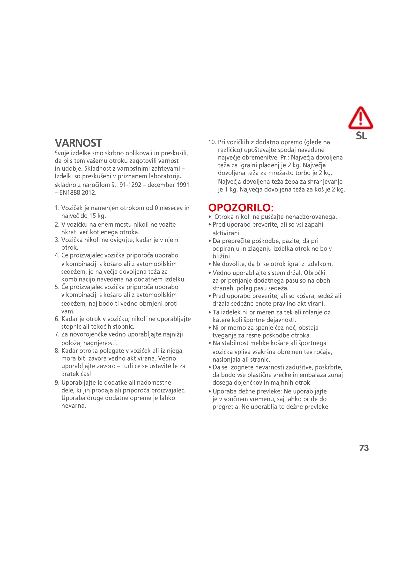 VARNOST Svoje izdelke smo skrbno oblikovali in preskusili, da bi s tem vašemu otroku zagotovili varnost in udobje. Skladnost z varnostnimi zahtevami – Izdelki so preskušeni v priznanem laboratoriju skladno z naročilom št. 91-1292 – december 1991 – EN1888:2012.