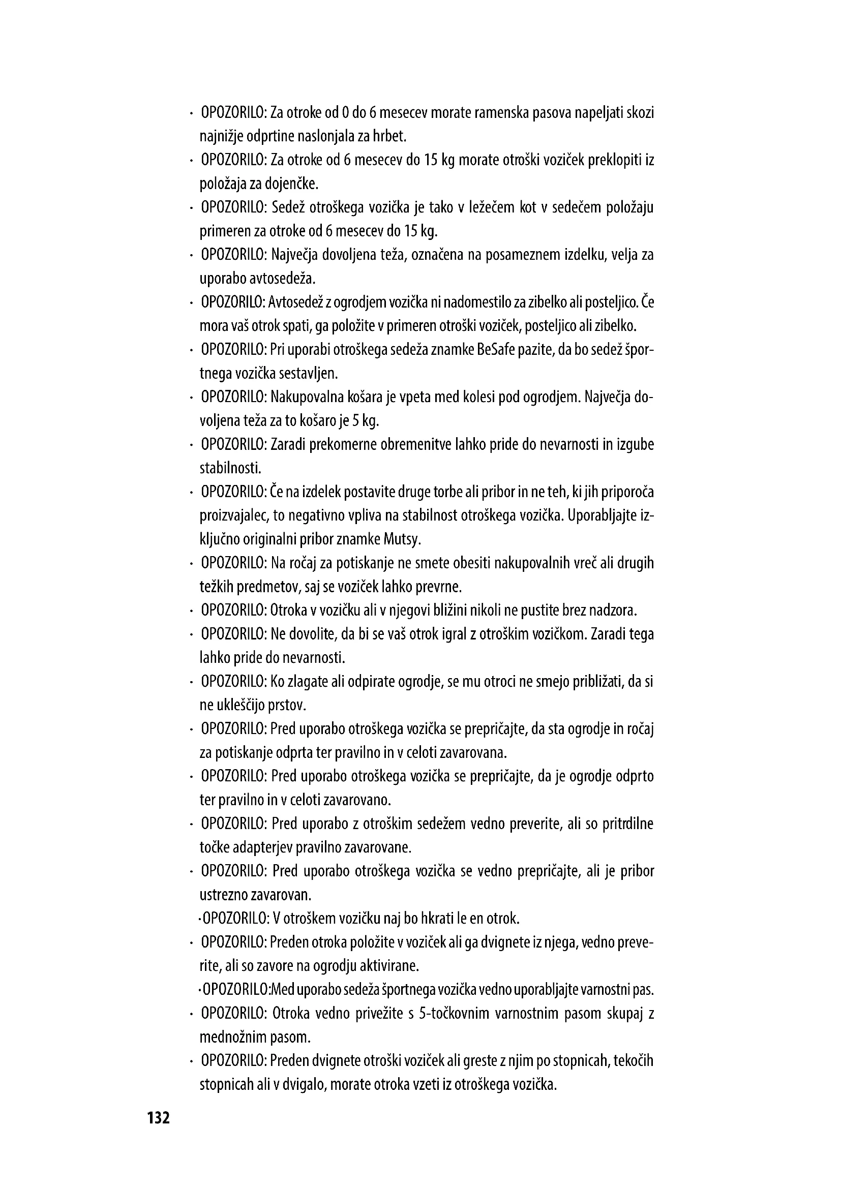 - OPOZORILO: Pri uporabi otroskega sedeža znamke BeSafe pazite, da bo sedež športnegа vozička sestavljen.