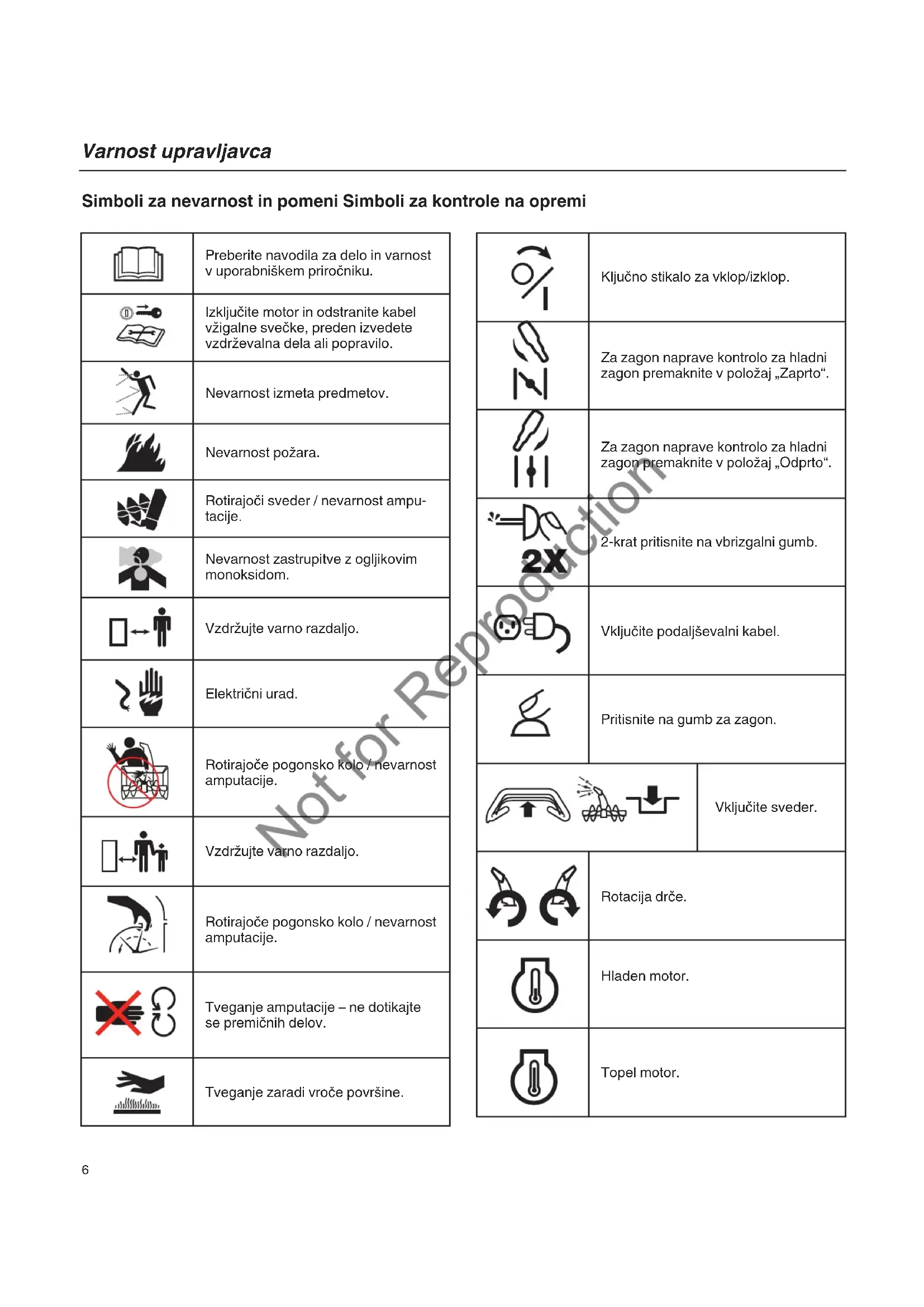- Motorja ne zaganjajte na zaprtih območjih, tudi če so vrata ali okna odprta. Not for Reproduction9