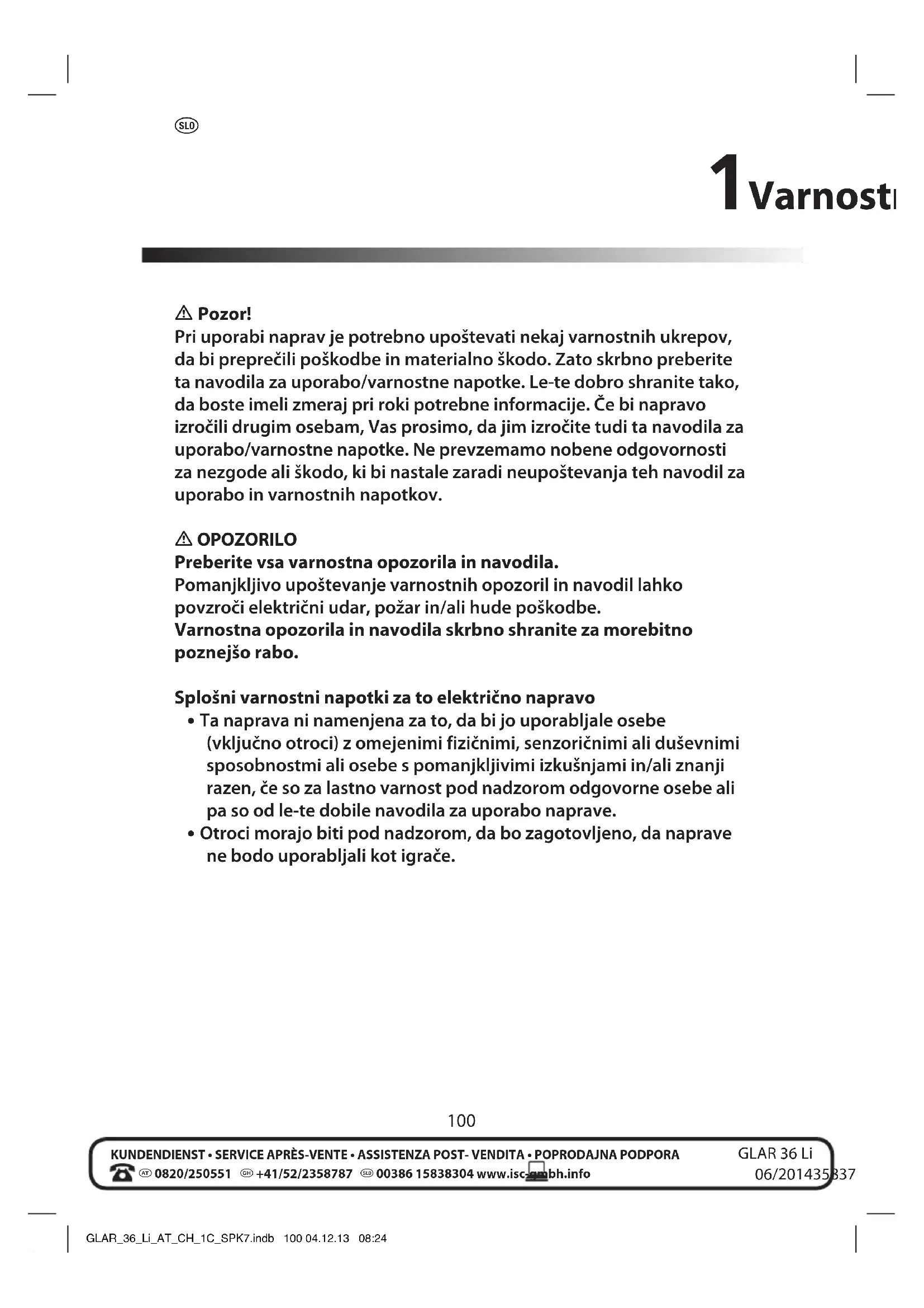 NAVODILA ZA UPORABO GLAR 36 Li Gardenline