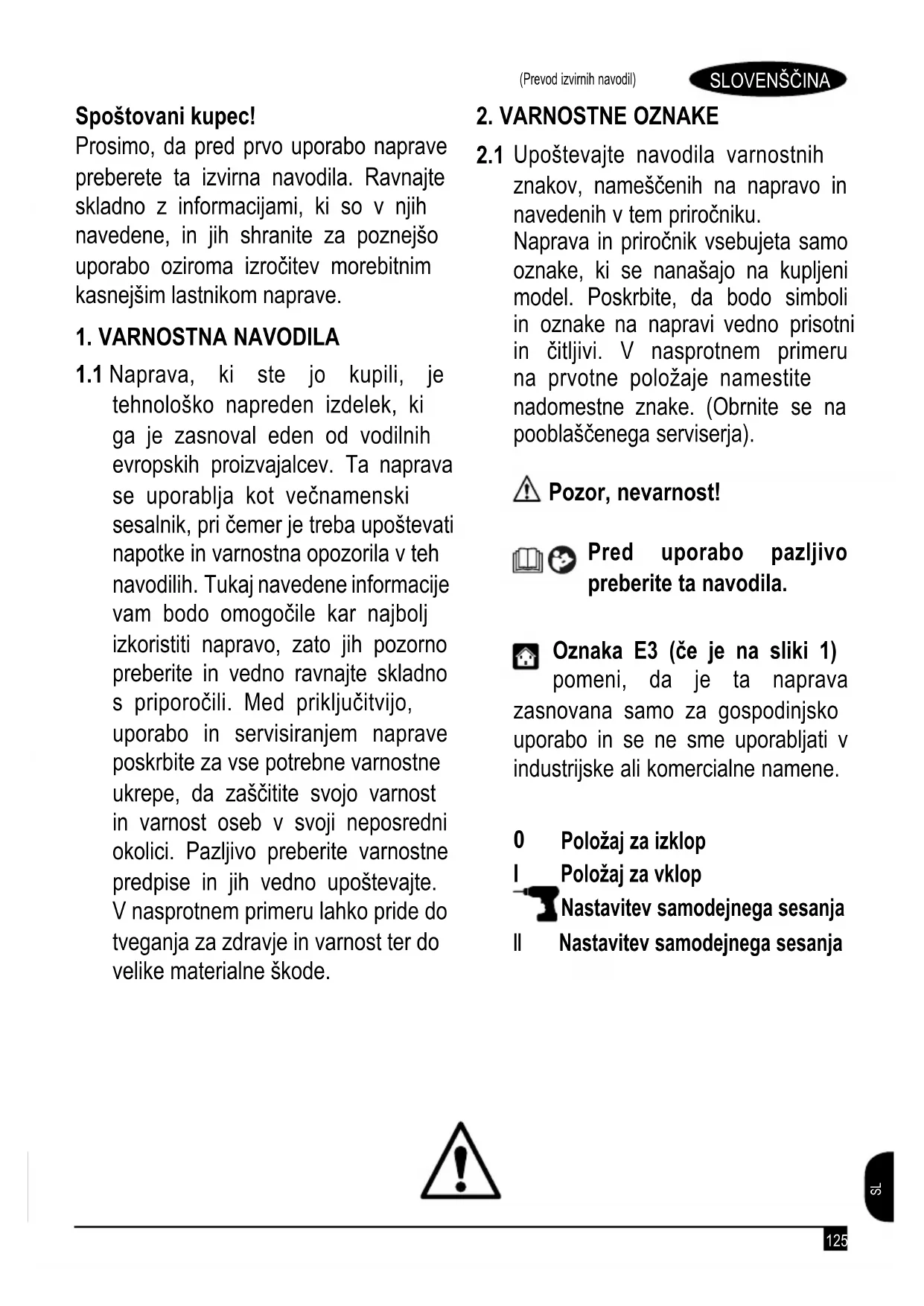 Spoštovani kupec! Prosimo, da pred prvo uporabo naprave preberete ta izvirna navodila. Ravnajte skladno z informacijami, ki so v njih navedene, in jih shranite za poznejšo uporabo oziroma izročitev morebitnim kasnejšim lastnikom naprave.