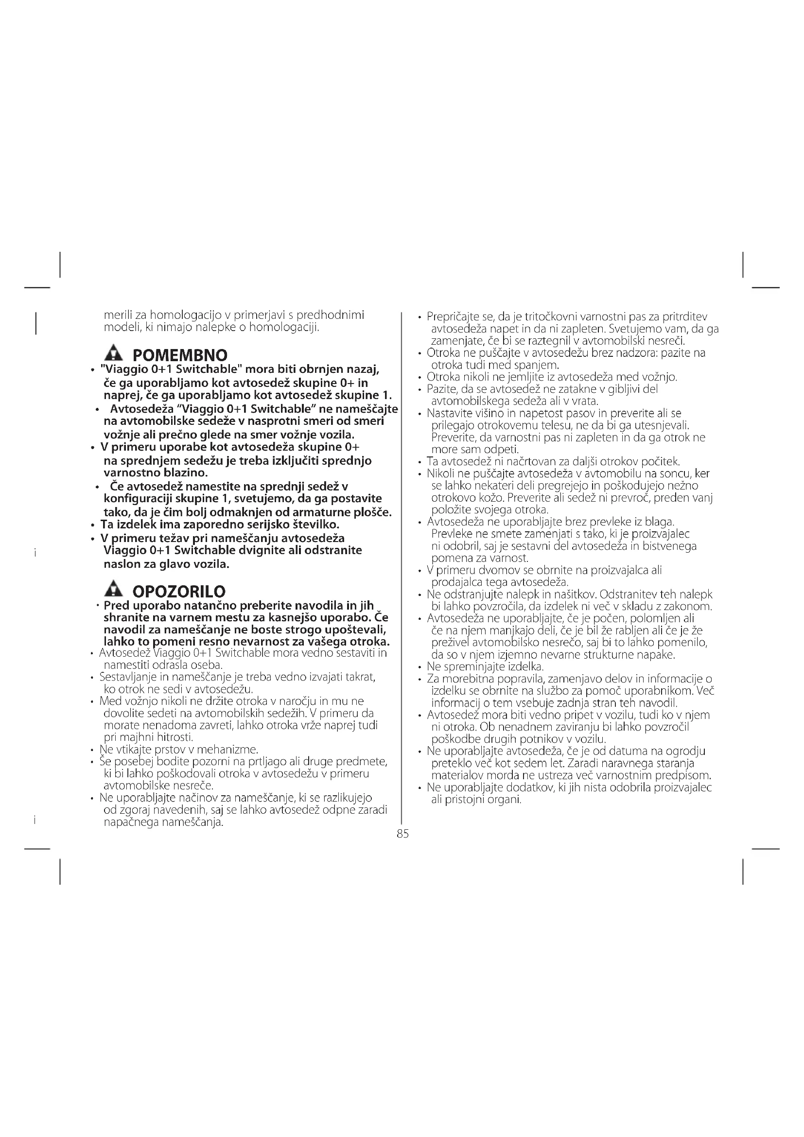 - Avtosedež Viaggio 0+1 Switchable mora vedno sestaviti in namestiti odrasla oseba.
