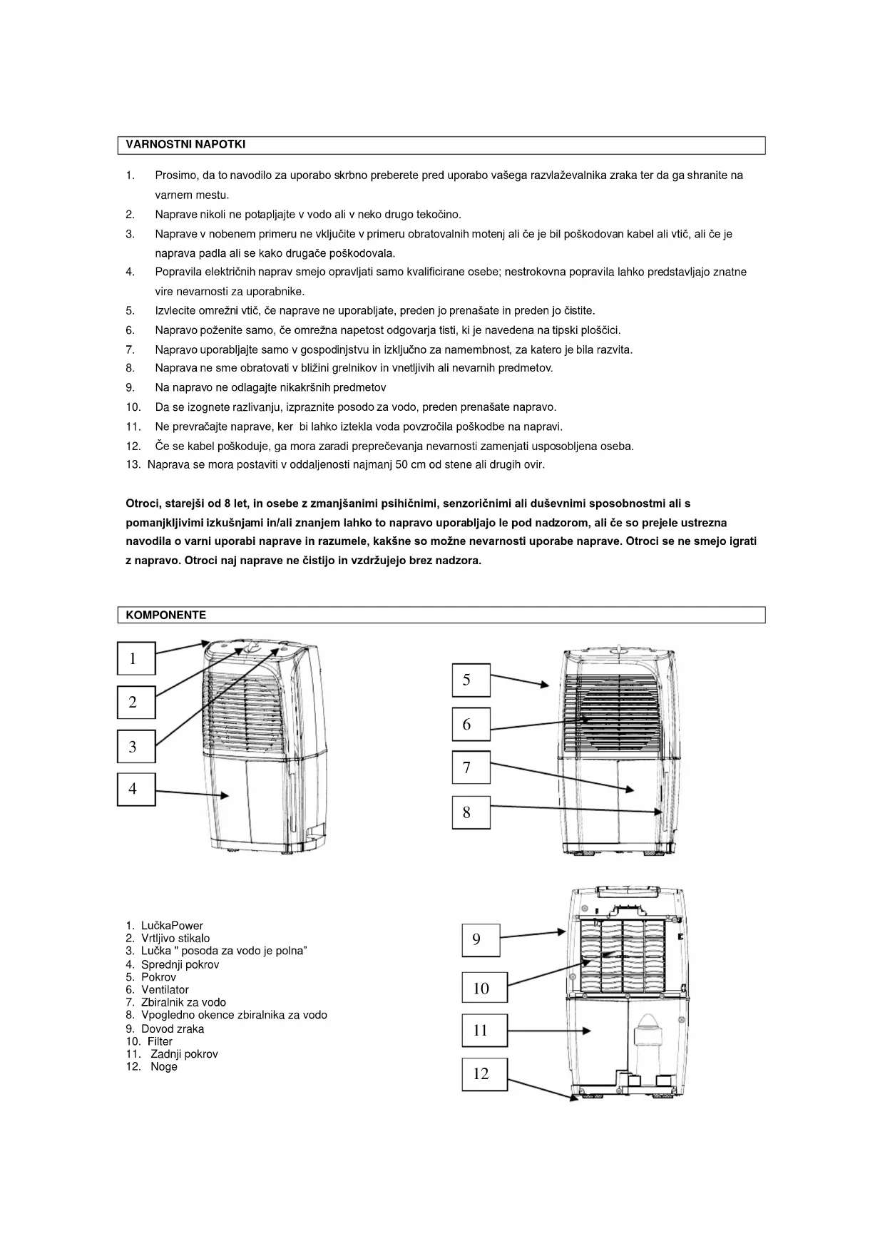 Otroci, starejši od 8 let, in osebe z zmanjšanimi psihičnimi, senzoričnimi ali duševnimi sposobnostmi ali s pomanjkljivimi izkušnjami in/ali znanjem lahko to napravo uporabljajo le pod nadzorom, ali če so prejele ustrezna navodila o varni uporabi naprave in razumele, kakšne so možne nevarnosti uporabe naprave. Otroci se ne smejo igrati z napravo. Otroci naj naprave ne čistijo in vzdržujejo brez nadzora.