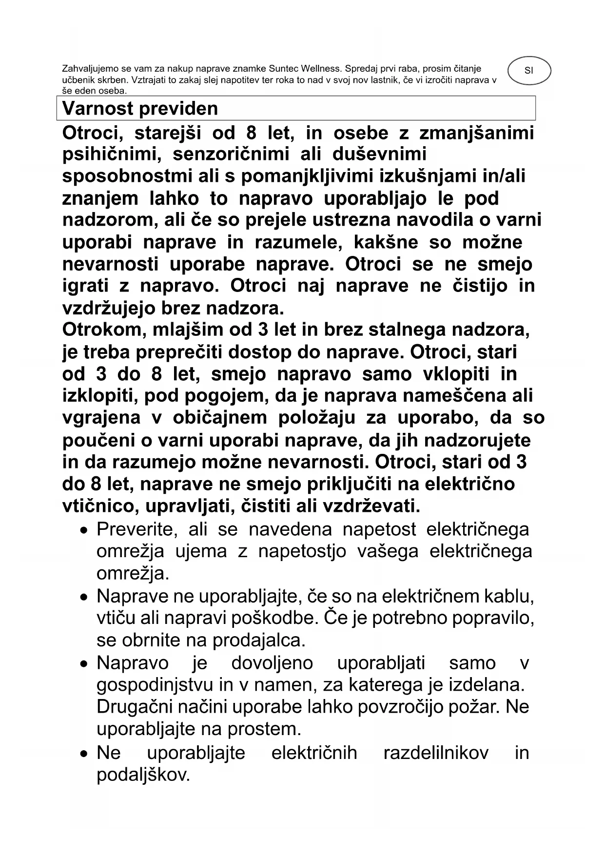 CoolBreeze SUNTEC WELLNESS GMBH / HOLZSTRASSE 2 / 40 221 DÜSSELDORF / GERMANYZahvaljujemo se vam za nakup naprave znamke Suntec Wellness. Spredaj prvi raba, prosim čitanje učbenik skrben. Vztrajati to zakaj slej napotitev ter roka to nad v svoj nov lastnik, če vi izročiti naprava v še eden oseba. Varnost previden Otroci, starejši od 8 let, in osebe z zmanjšanimi psihičnimi, senzoričnimi ali duševnimi sposobnostmi ali s pomanjkljivimi izkušnjami in/ali znanjem lahko to napravo uporabljajo le pod nadzorom, ali če so prejele ustrezna navodila o varni uporabi naprave in razumele, kakšne so možne nevarnosti uporabe naprave. Otroci se ne smejo igrati z napravo. Otroci naj naprave ne čistijo in vzdržujejo brez nadzora. Otrokom, mlajšim od 3 let in brez stalnega nadzora, je treba preprečiti dostop do naprave. Otroci, stari od 3 do 8 let, smejo napravo samo vklopiti in izklopiti, pod pogojem, da je naprava nameščena ali vgrajena v običajnem položaju za uporabo, da so poučeni o varni uporabi naprave, da jih nadzorujete in da razumejo možne nevarnosti. Otroci, stari od 3 do 8 let, naprave ne smejo priključiti na električno vtičnico, upravljati, čistiti ali vzdrževati.