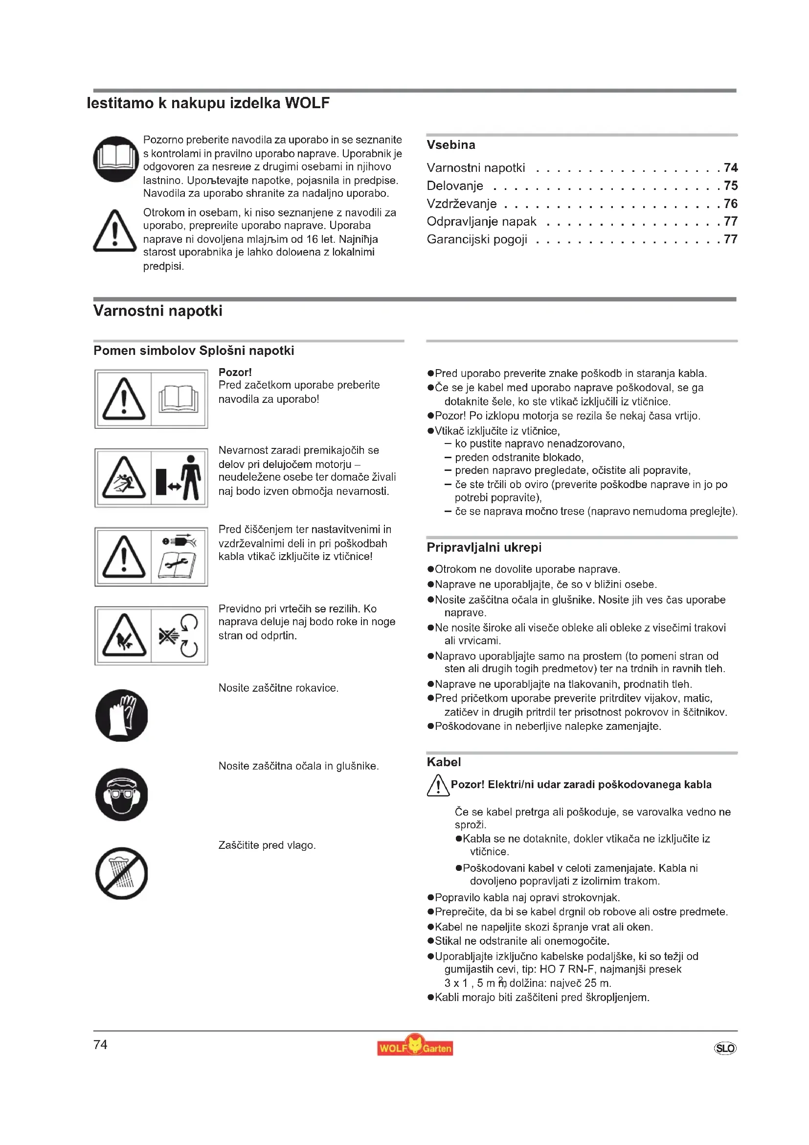 NAVODILA ZA UPORABO SDL 2500 Wolf Garten