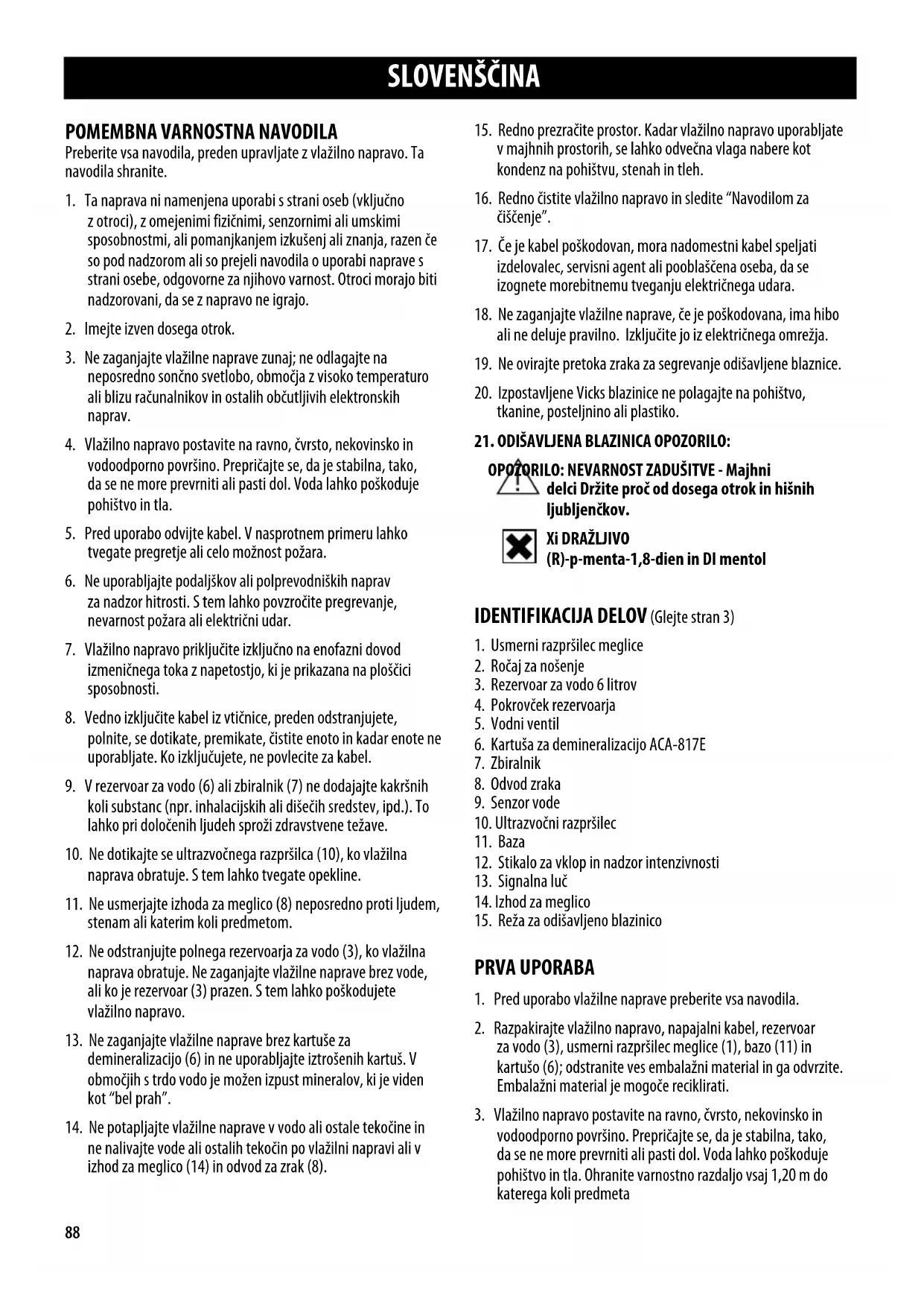 16. Redno čistite vlažilno napravo in sledite “Navodilom za
