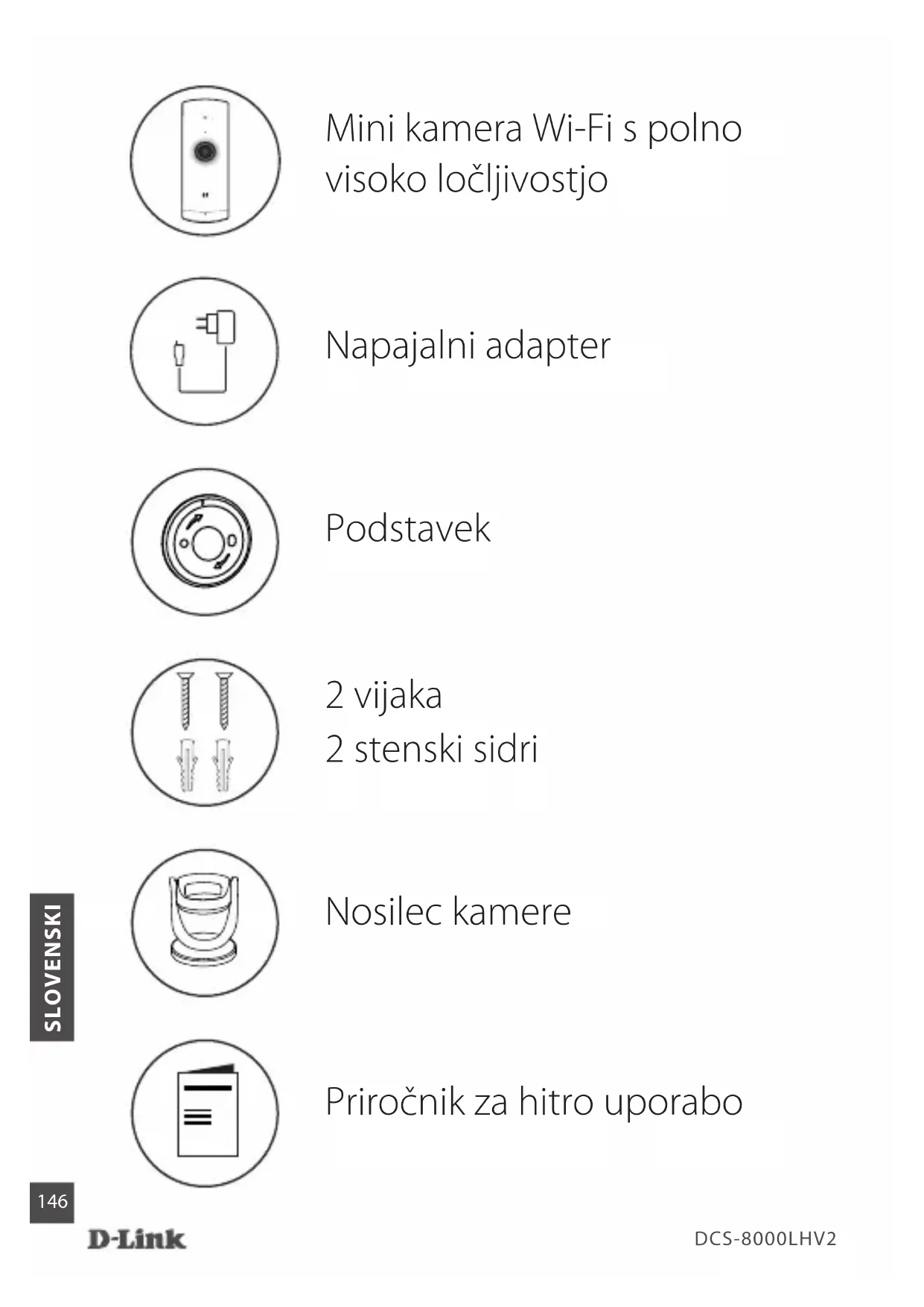 SLOVENSKI Priročnik za hitro uporabo Napajalni adapter Mini kamera Wi-Fi s polno visoko ločljivostjo 2 vijaka 2 stenski sidri Nosilec kamere PodstavekDCS-8000LHV2 SLOVENSKI Poiščite aplikacijo mydlink in jo prenesite. Opomba: ta izdelek je združljiv z drugimi aplikacijami mydlink, na primer »mydlink Home«,«mydlink Lite« itd. Prenos aplikacije