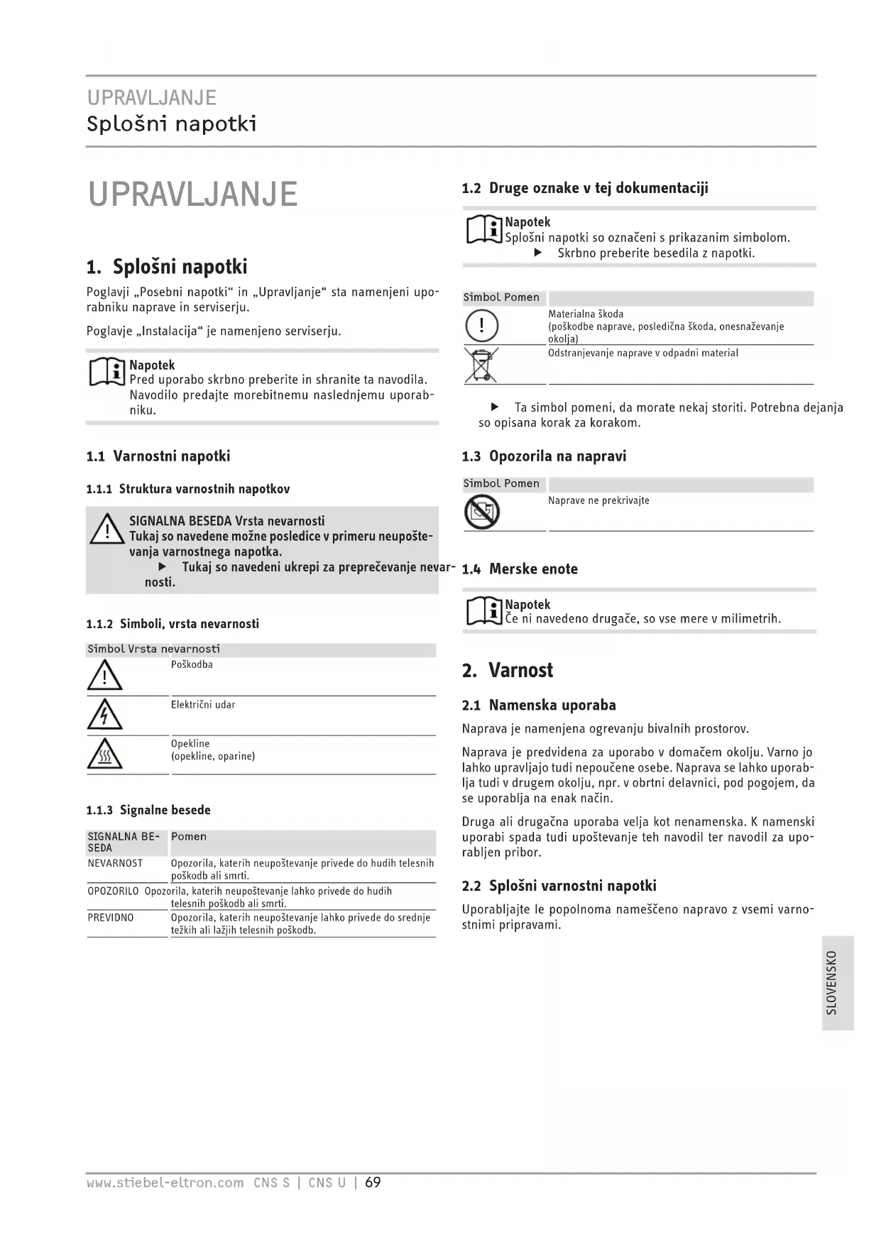 !UPRAvlJAnJe Opis naprave 70 | CNS S | CNS U www.stiebel-eltron.com