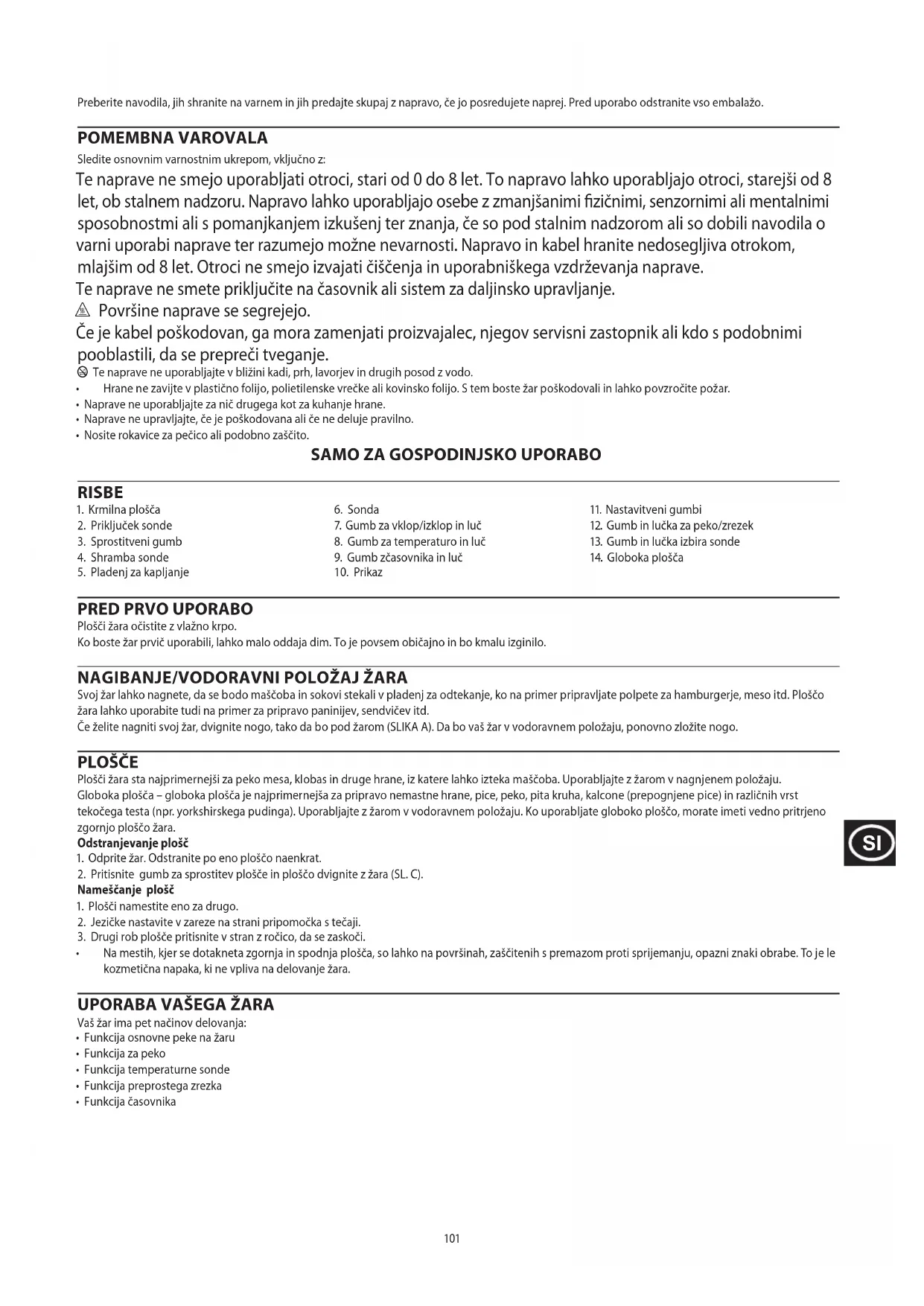 - Pri kuhanju predpakiranih živil upoštevajte smernice na embalaži ali nalepki.