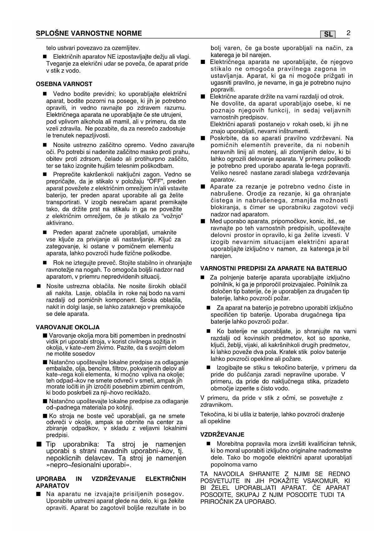 VARNOSTNI PREDPISI ZA APARATE NA BATERIJO
