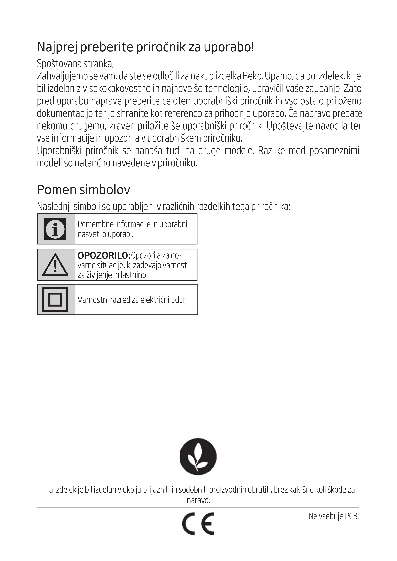 NAVODILA ZA UPORABO VCC 5325 AR BEKO