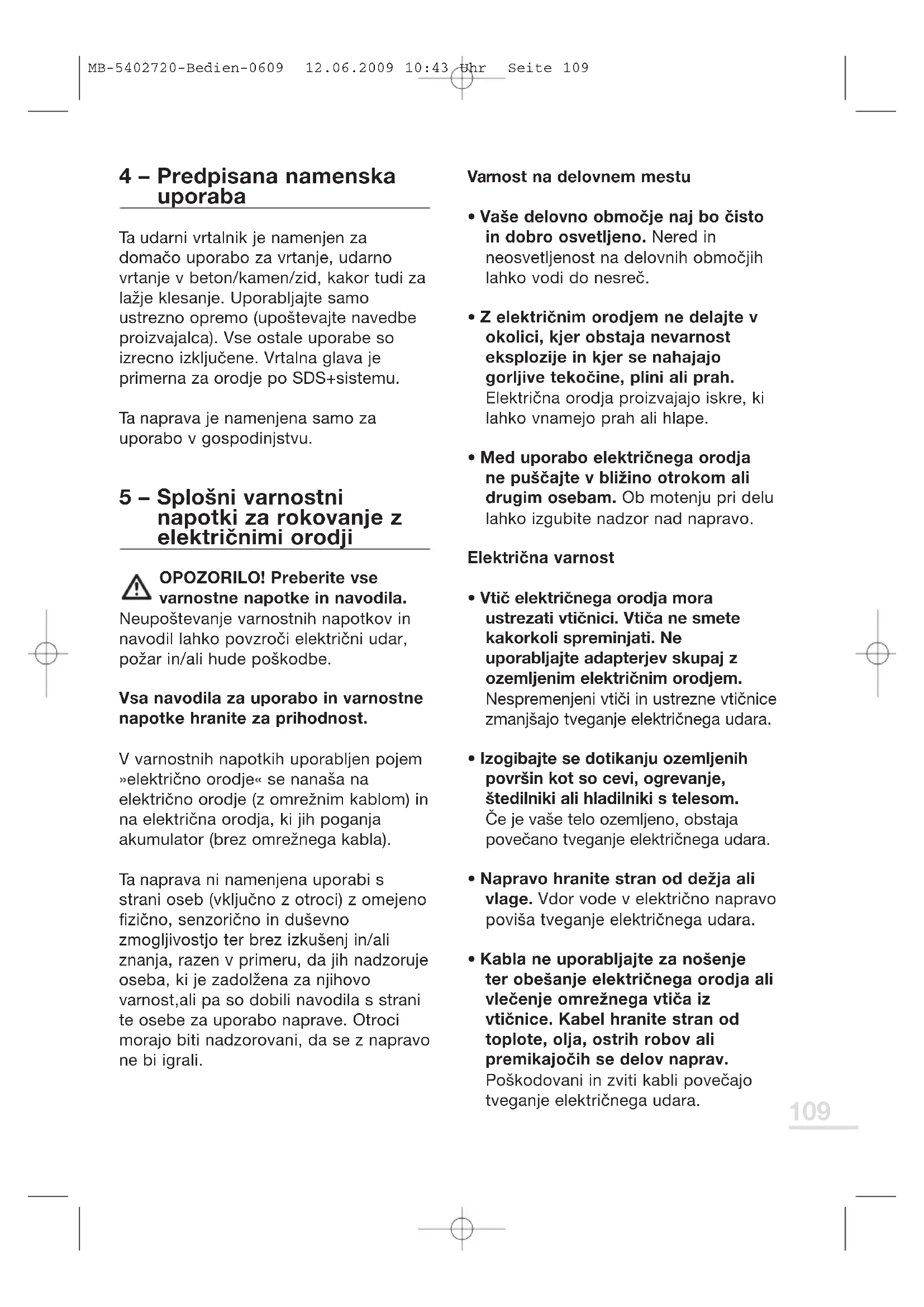 5 - Splošni varnostni napotki za rokovanje z elektrčnimi orodji