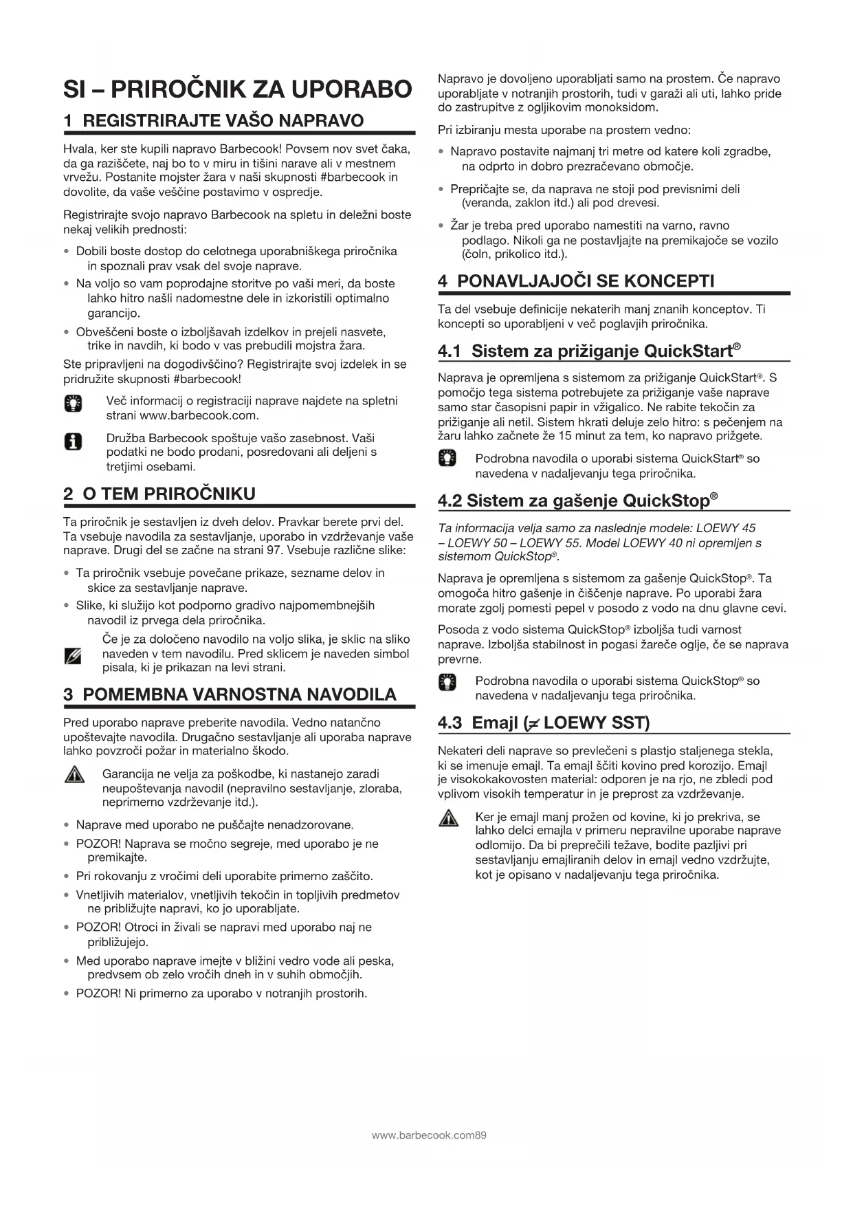 Loewy SST - Žar BARBECOOK - Brezplačna navodila za uporabo