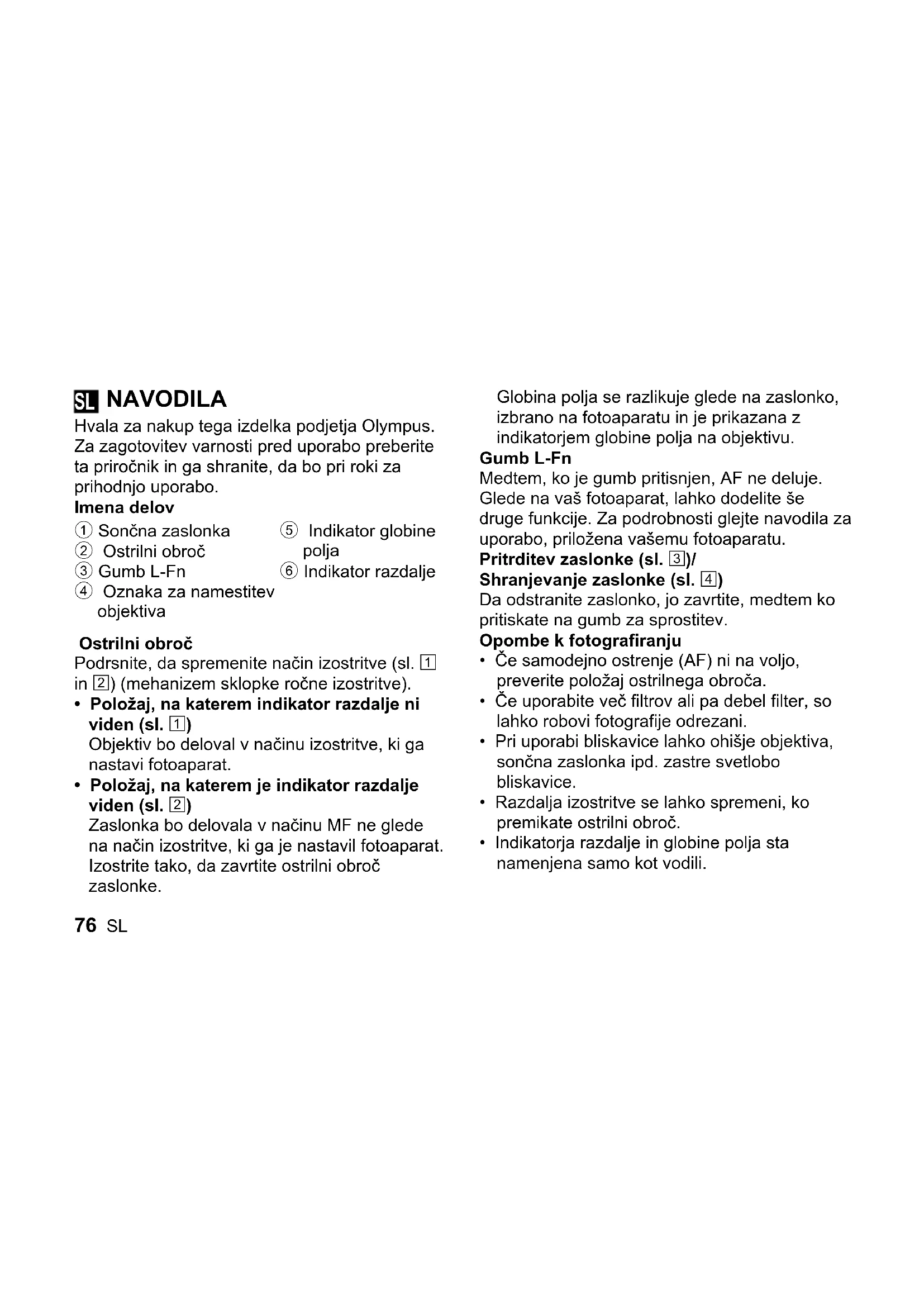 NAVODILA ZA UPORABO M.Zuiko 45mm f1.2 OLYMPUS