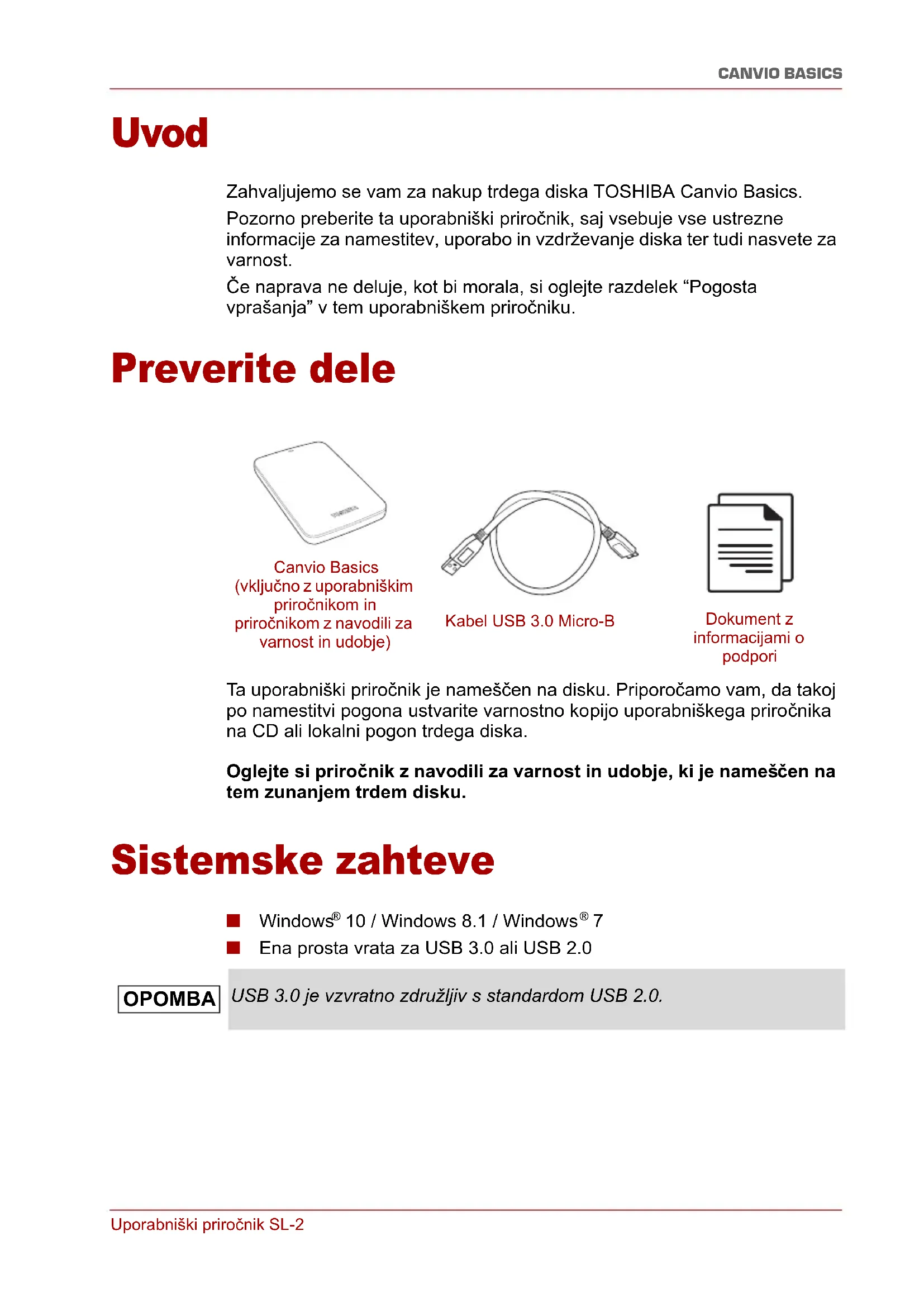 NAVODILA ZA UPORABO Canvio Basics Exclusive TOSHIBA