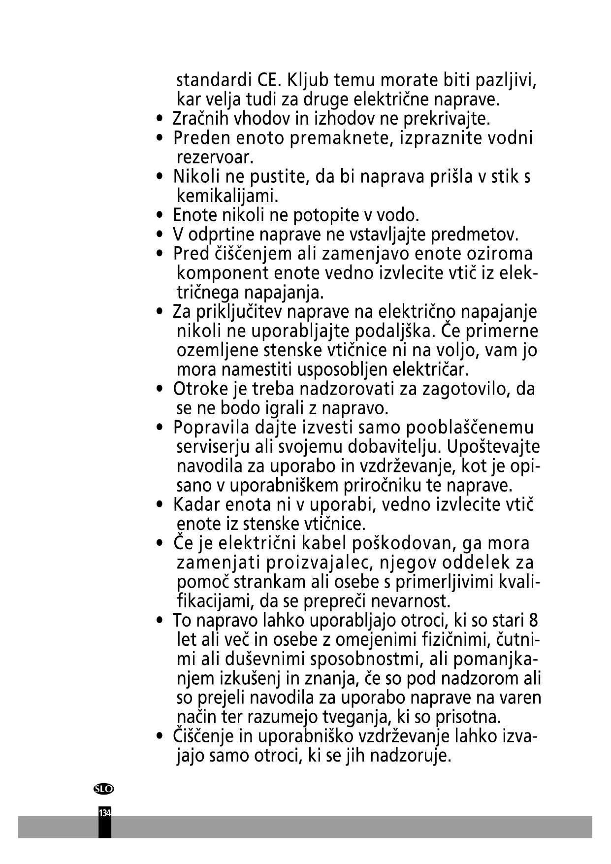 - Čiščenje in uporabniško vzdrževanje lahko izva- jajo samo otroci, ki se jih nadzoruje.