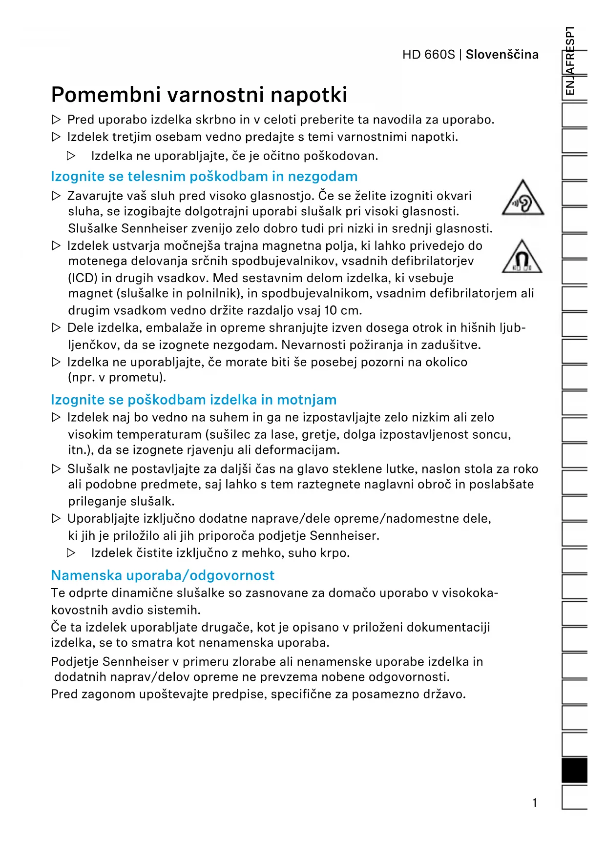 NAVODILA ZA UPORABO HD 660 S SENNHEISER
