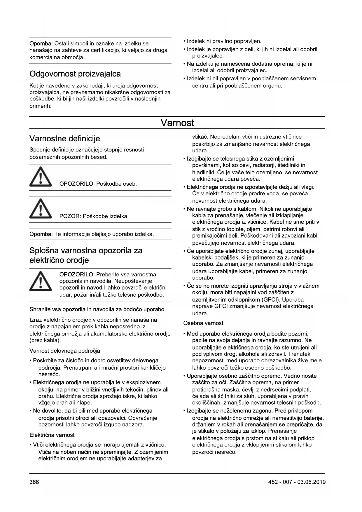 452 - 007 - 03.06.2019 365Opomba: Ostali simboli in oznake na izdelku se