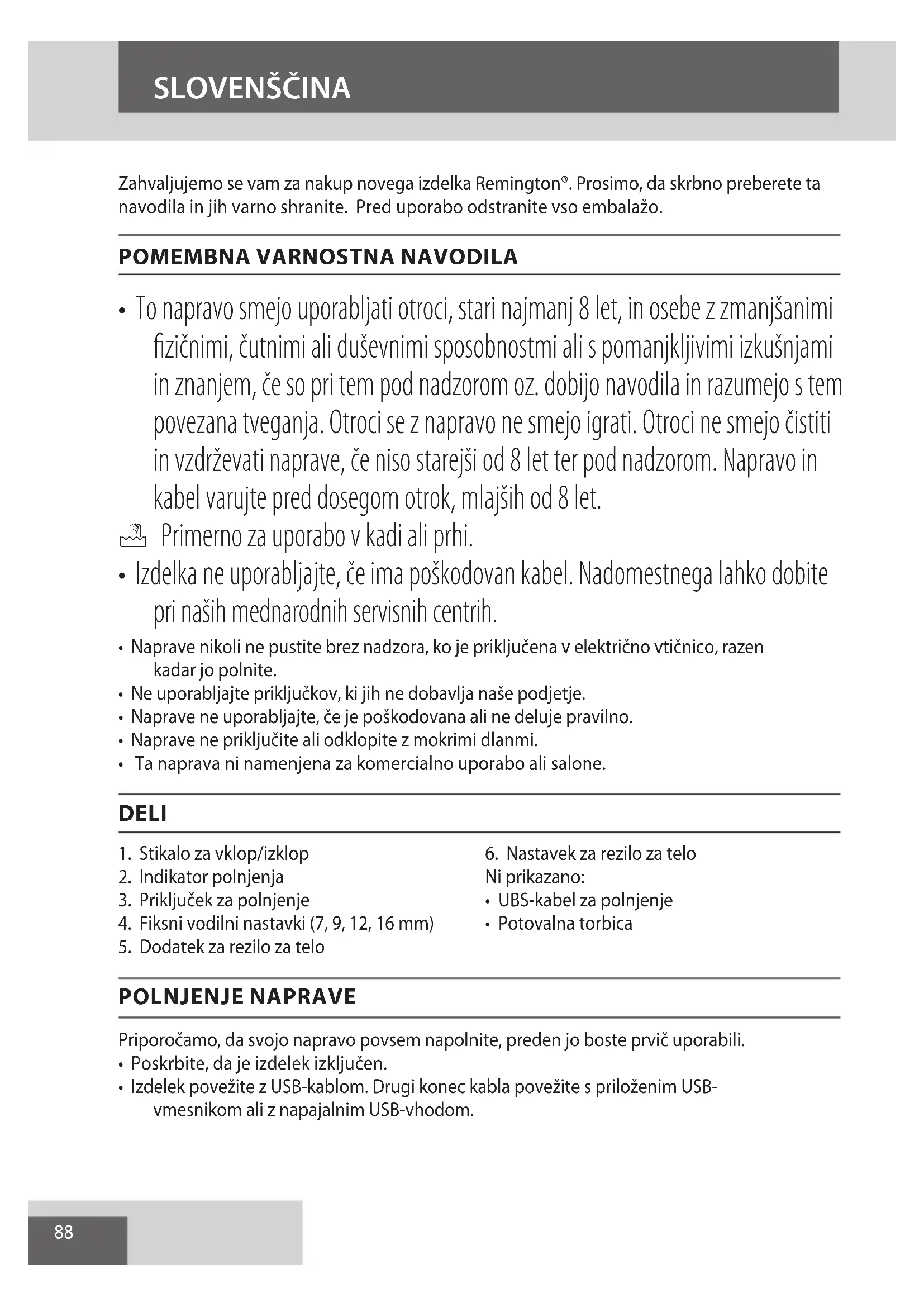 - Svojega strižnika ne morete prenapolniti. Vseeno pa izdelek, Če ga dlje Časa (2-3 mesece) ne boste uporabljali, odklopite iz omrežja in shranite.